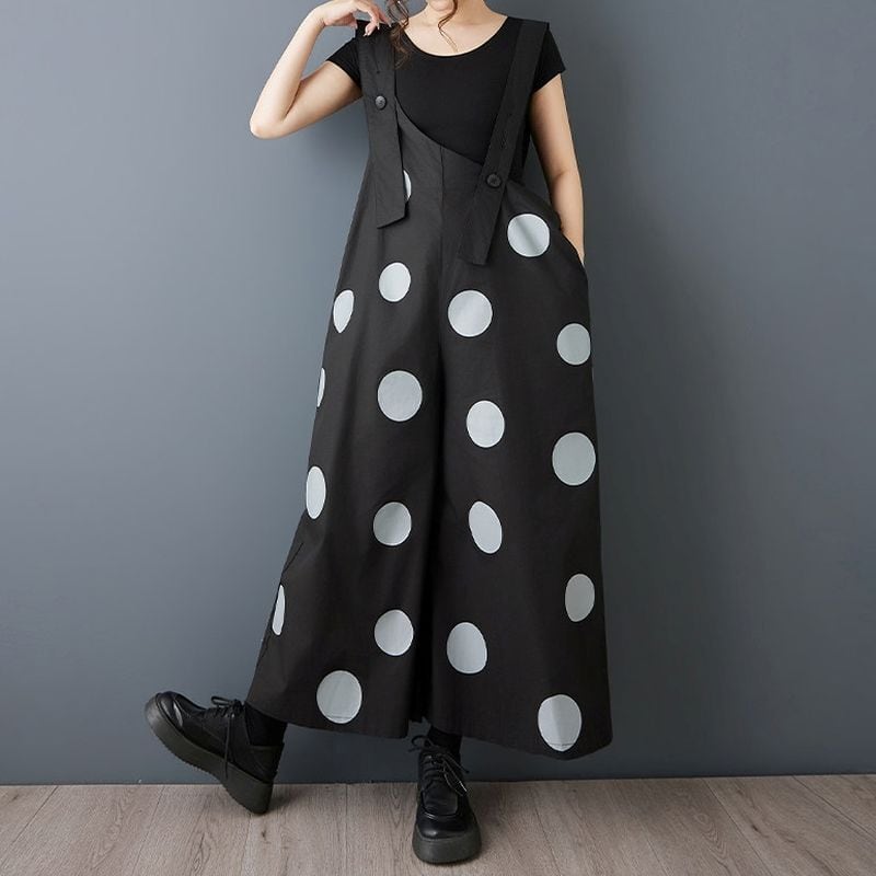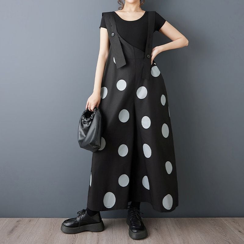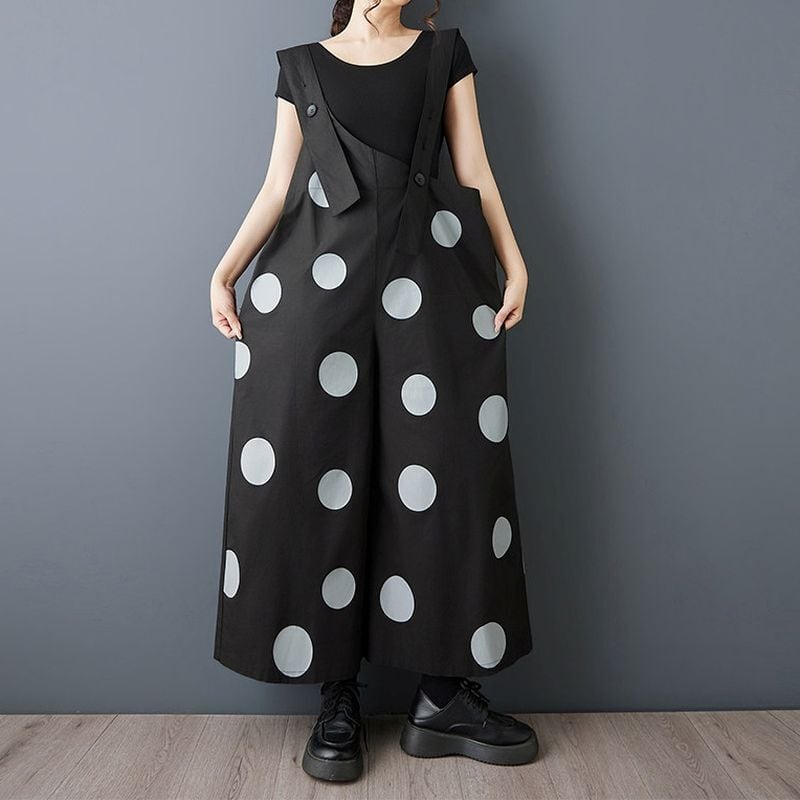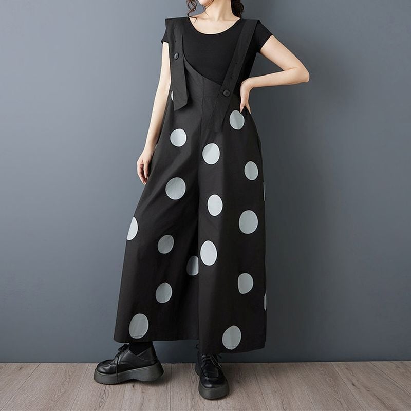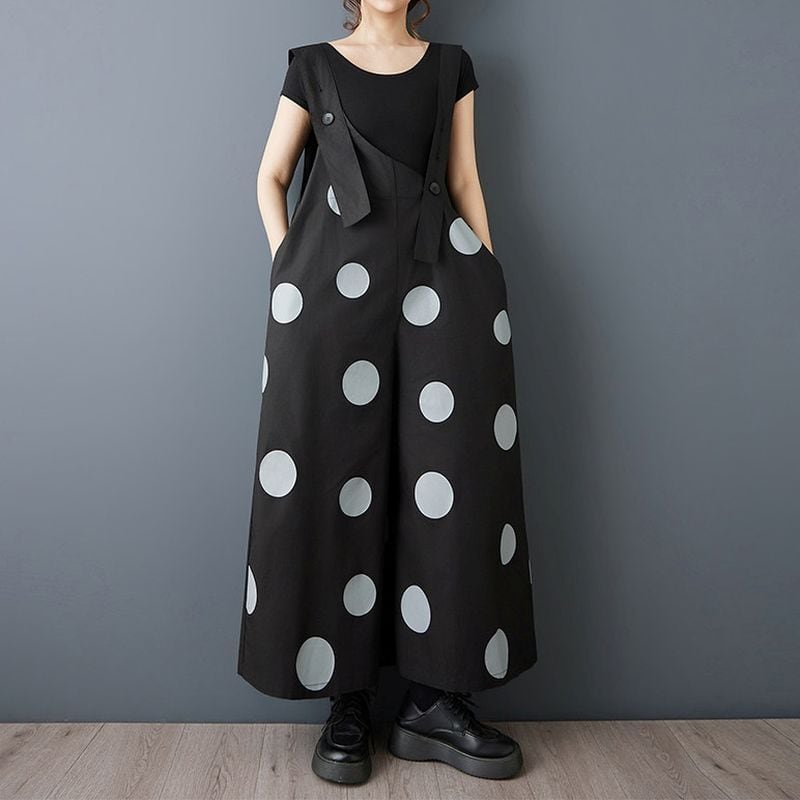 大胆なドット柄が印象的なデザインサロペット。