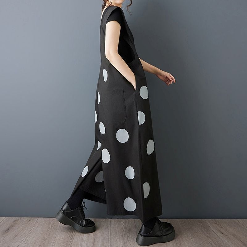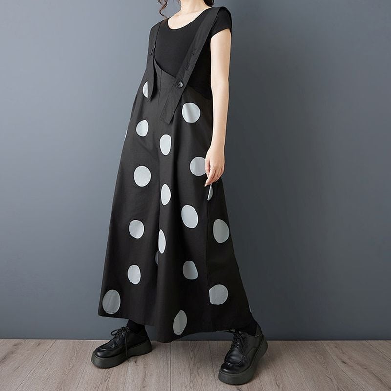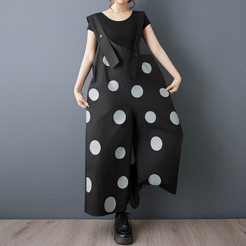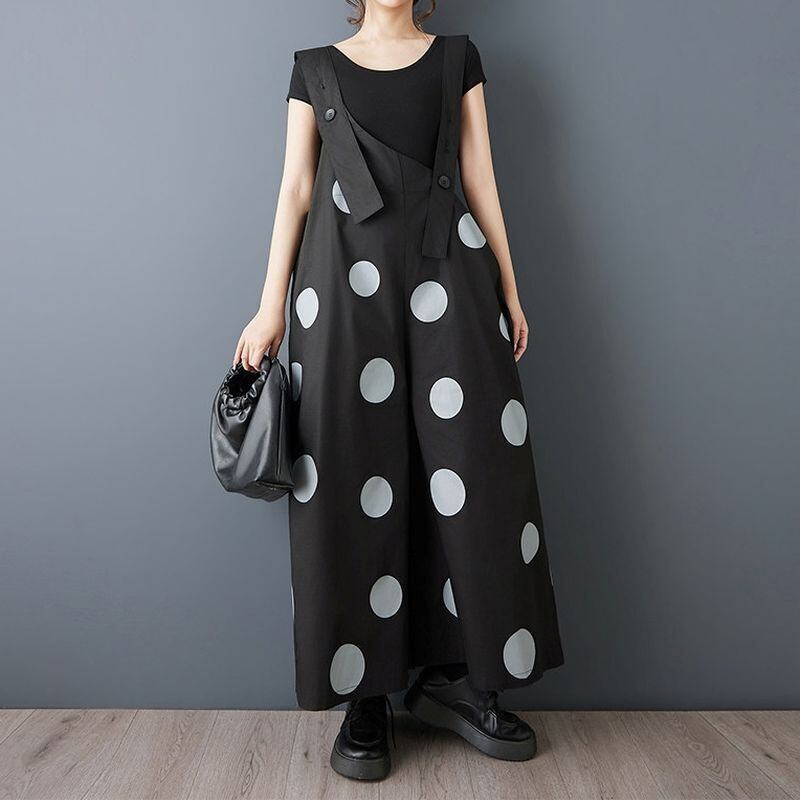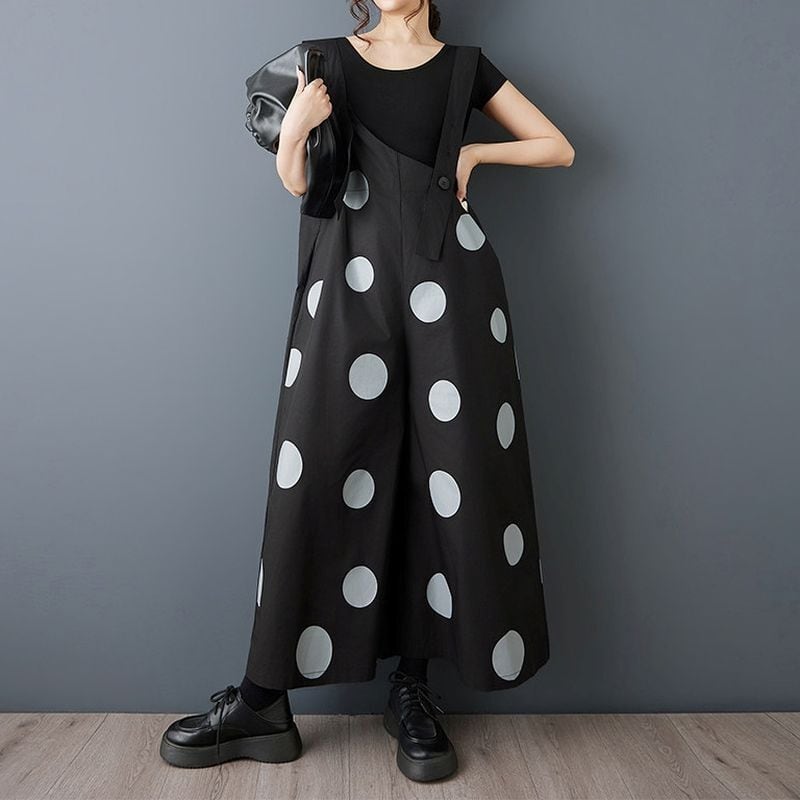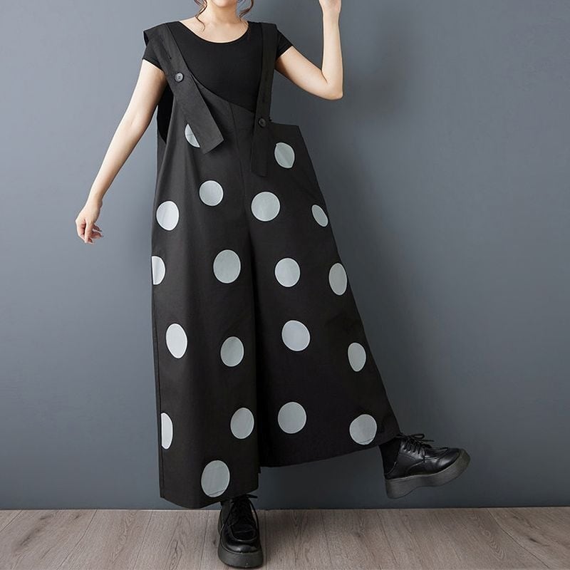 大胆なドット柄が印象的なデザインサロペット。