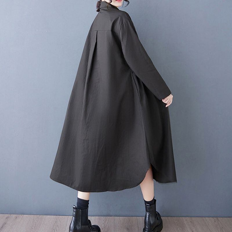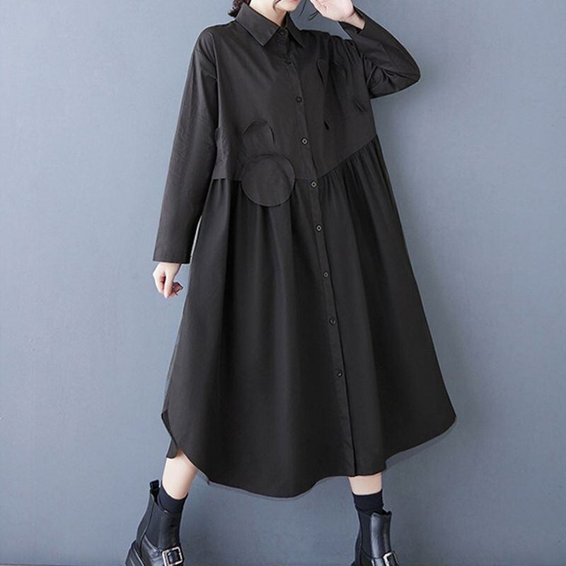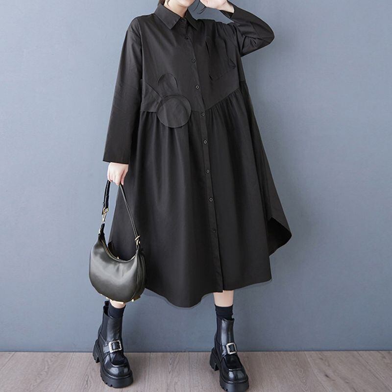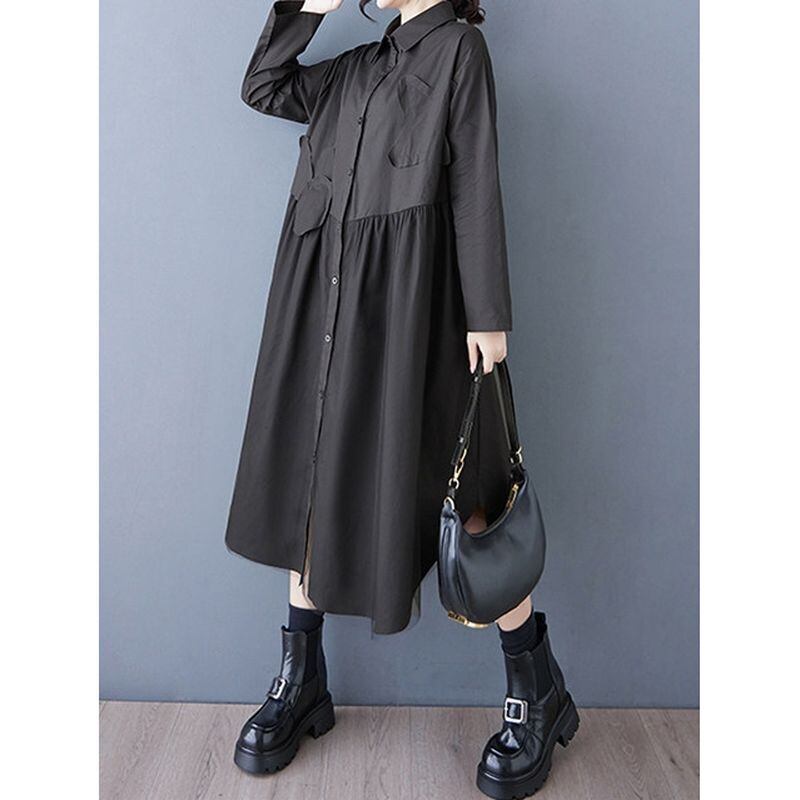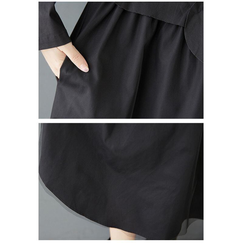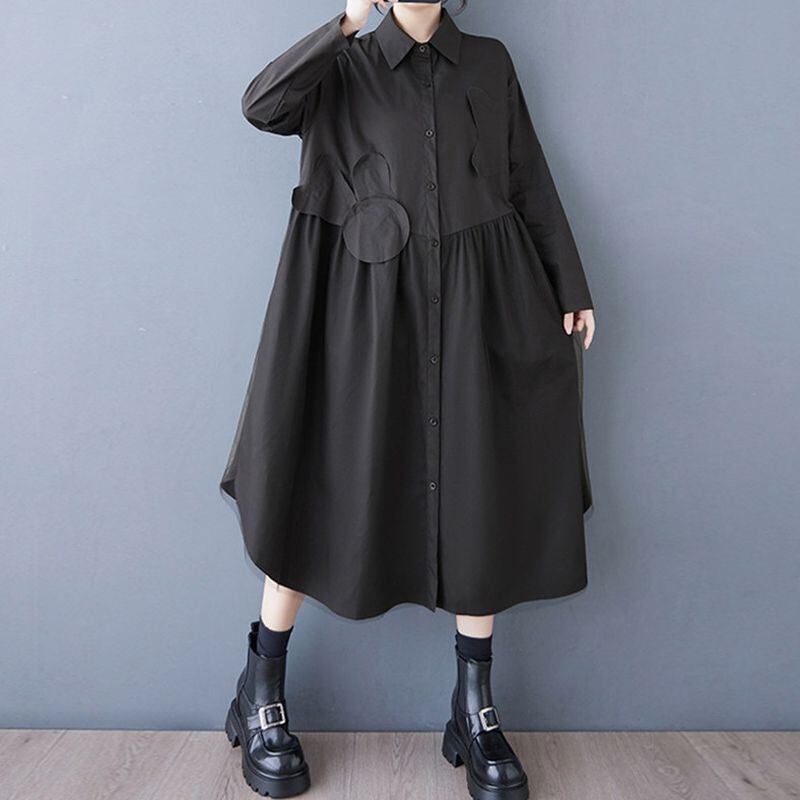 シャツデザインにチュールを重ねた、印象的なロングワンピース。