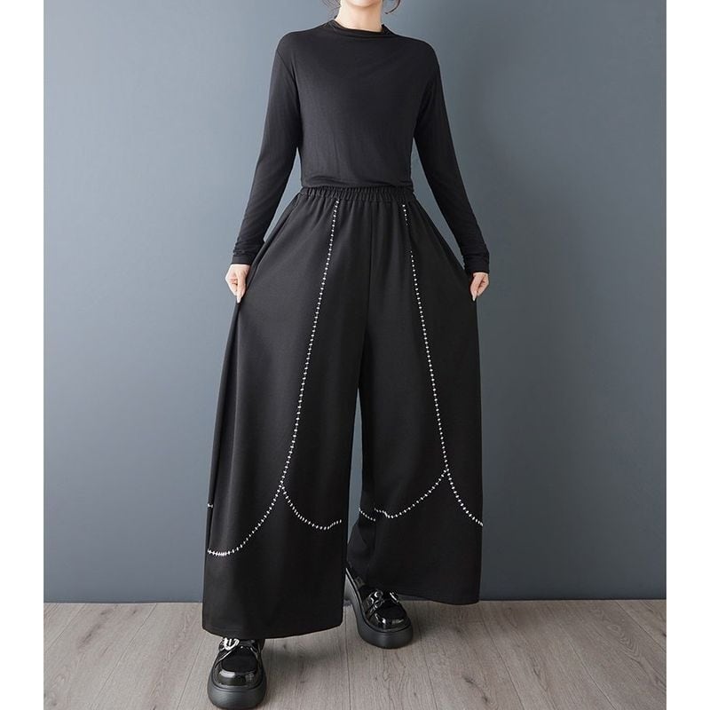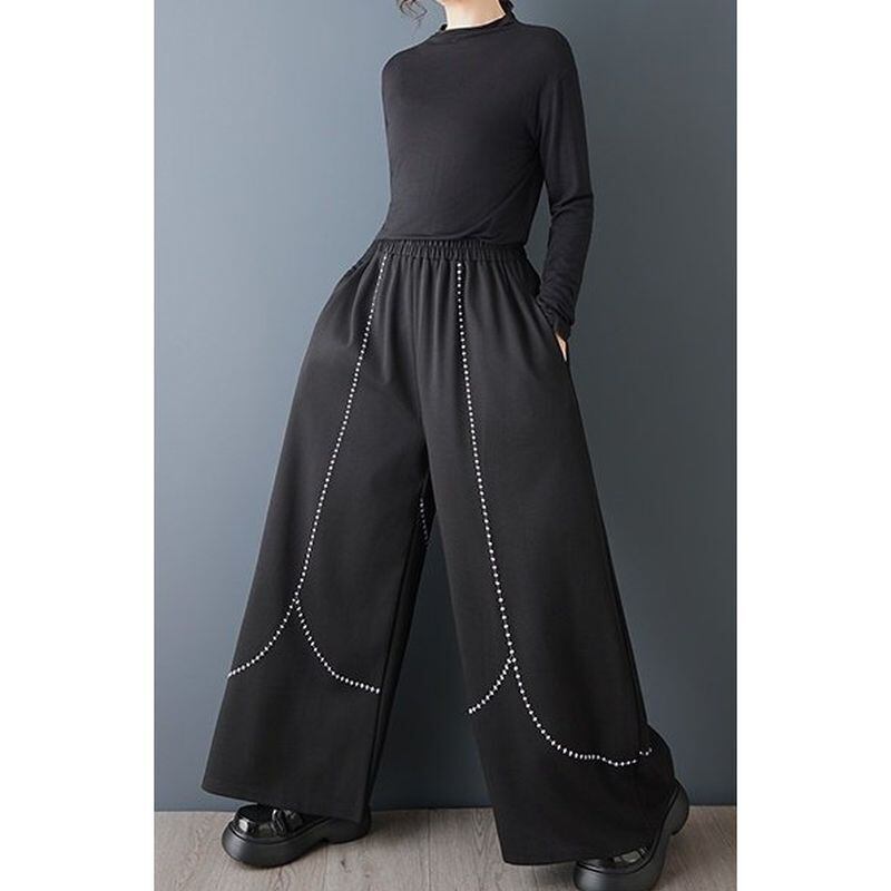 ゆったりとしたシルエットが印象的なワイドパンツ。
