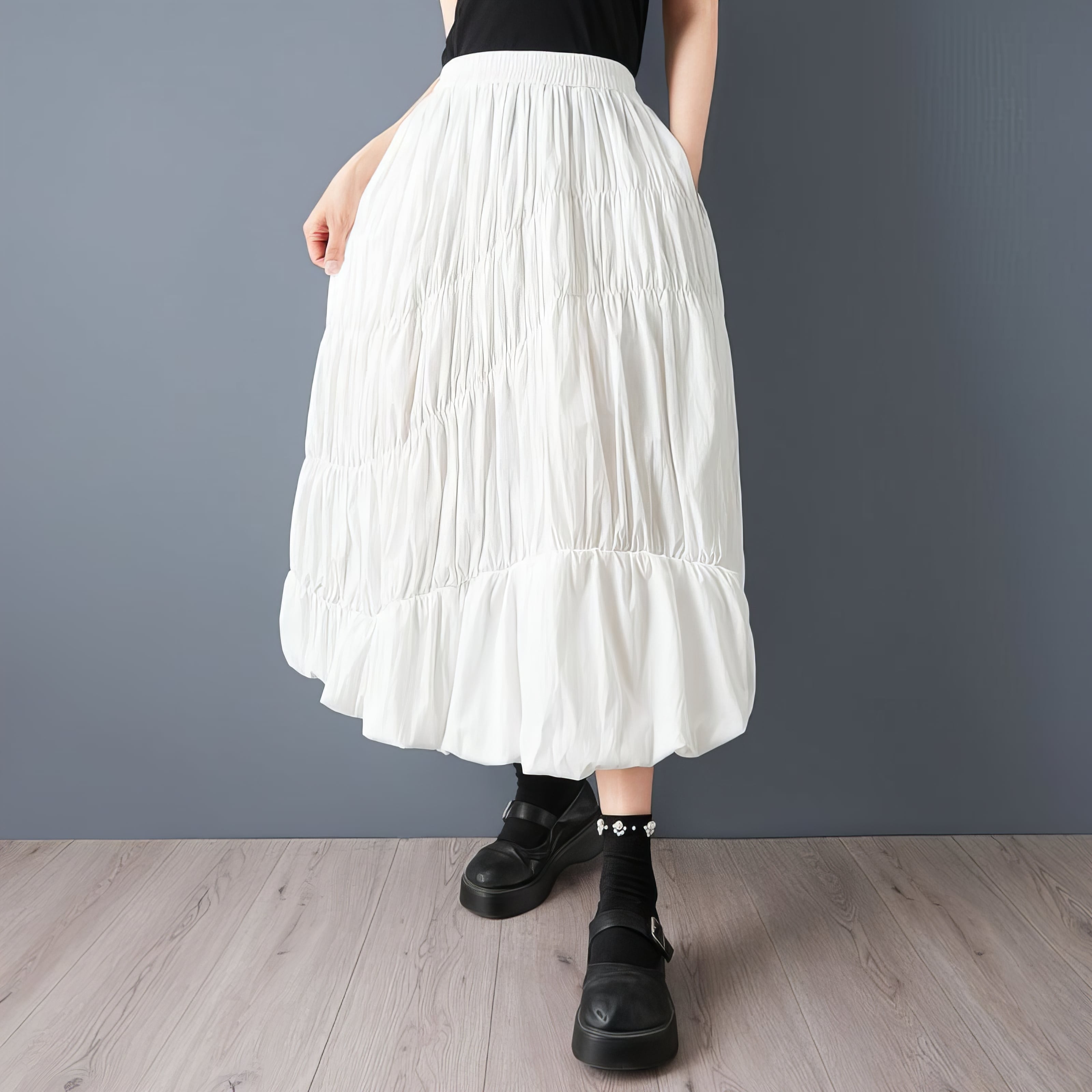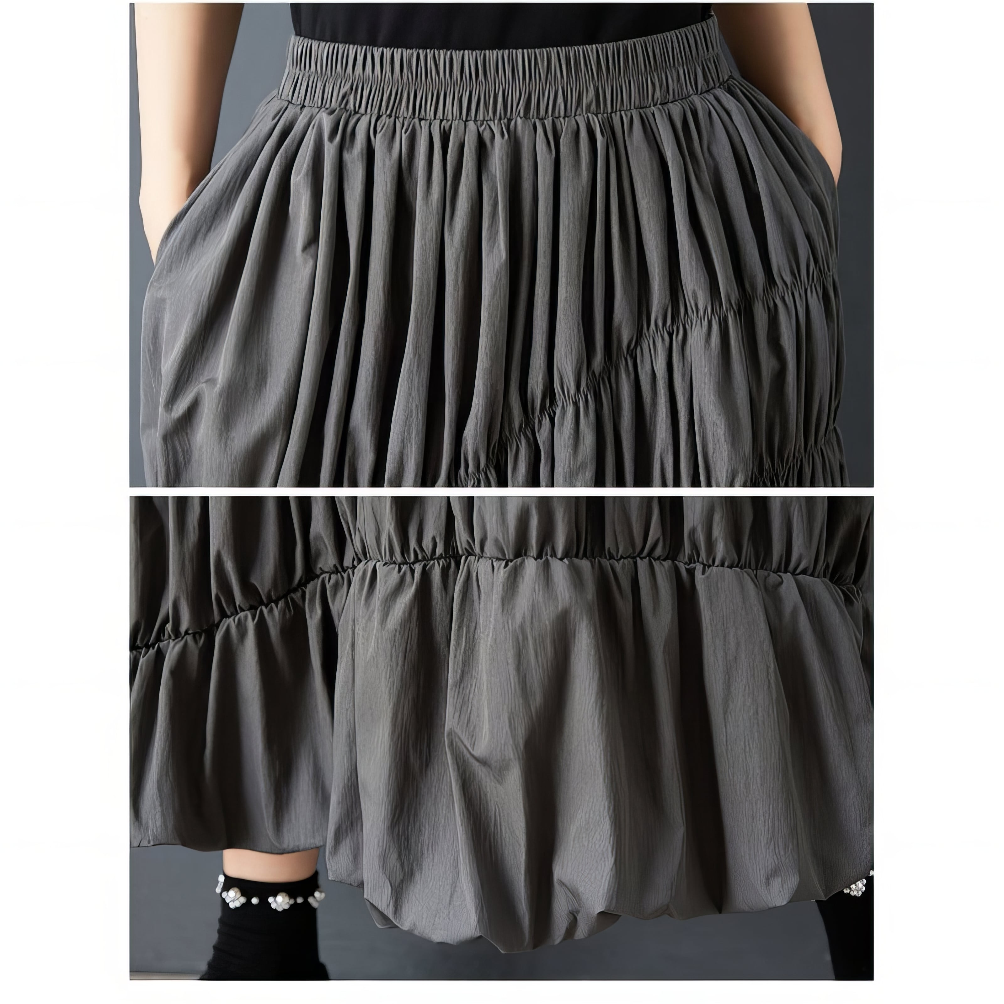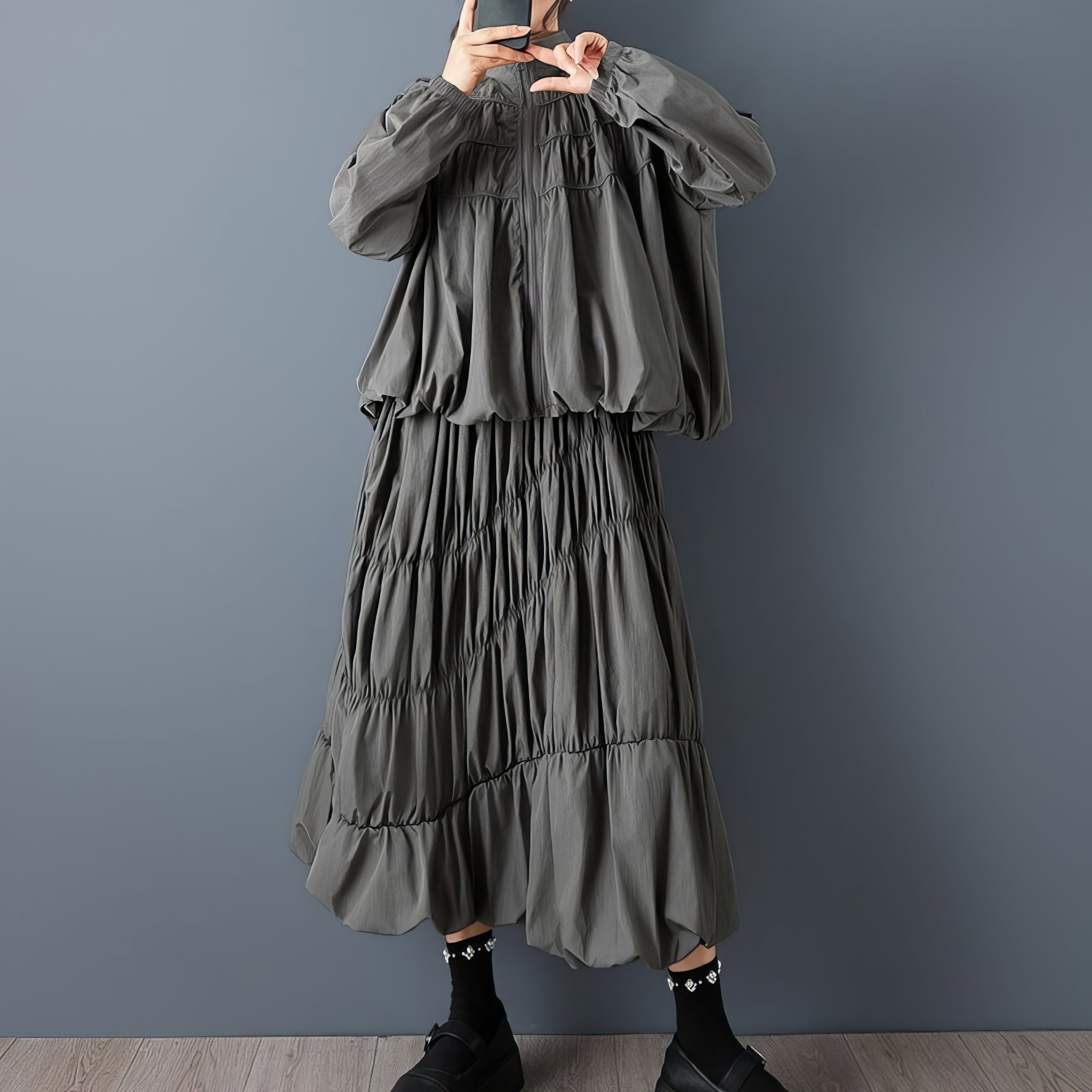 全体にたっぷりと入れたギャザーが、ふんわりとした立体感をつくるデザイン。 丸みのあるシルエットで、存在感がありながら重たく見えにくいバランスに。 単品でも使いやすく、上下で合わせるとバランスの整った着こなしが楽しめます。 ※attention※ ---------------------------------------- 商品は単品での販売となります。 セットでのご着用をご希望の場合は、それぞれをお求めください。 ---------------------------------------- 【サイズ】 ・トップス F 肩幅:56cm 胸囲:128cm 着丈:57cm 袖丈:52cm ・スカート F ウエスト:66-106cm ヒップ:172cm スカート丈:81cm ※モデル:F 着用 (身長:160cm 体重:51kg) ※手採寸のため1-3cmの誤差が生じることがございます。 【種類】 ・トップス ・スカート 【カラー】 ・グレー ・ブラック ・ホワイト 【素材】 ・ポリエステル ・その他 ■大人気 *Hot item* をご紹介 https://shop.morebelle.com/categories/6319500 ■MoreBelleでおしゃれをお楽しみください。 下記URLよりコレクションをチェック https://shop.morebelle.com 【お届けについて】 こちらの商品は海外店舗より直接発送となる為、 ご注文から 1~4週間(平均2週間)前後で発送いたします。 ■注意事項 ・タイミングによっては 商品在庫切れにより 注文キャンセルとさせていただく恐れもございますので、予めご了承くださいませ。 ・こちらは輸入品となります。日本製とは検品基準が異なる為、 新品未使用品でもごくわずかな汚れや ほつれがある場合もございます。 ・仕入れ工場を変えることがあるため、記載サイズと若干異なる場合がございます。 ・商品の色味は、お使いのモニター環境によって実物と若干異なる場合がございます。 ・イメージ違いやサイズ交換等、お客さまご都合による交換、返品は対応出来かねます。 ■Instagramで新しいファッションをシェア https://www.instagram.com/morebelle.official ------------------------ ご購入前に「ご利用ガイド」をお読みください →https://shop.morebelle.com/about ------------------------ ※メールアドレスはキャリアメール以外をご入力いただきますよう、ご協力をお願いします。