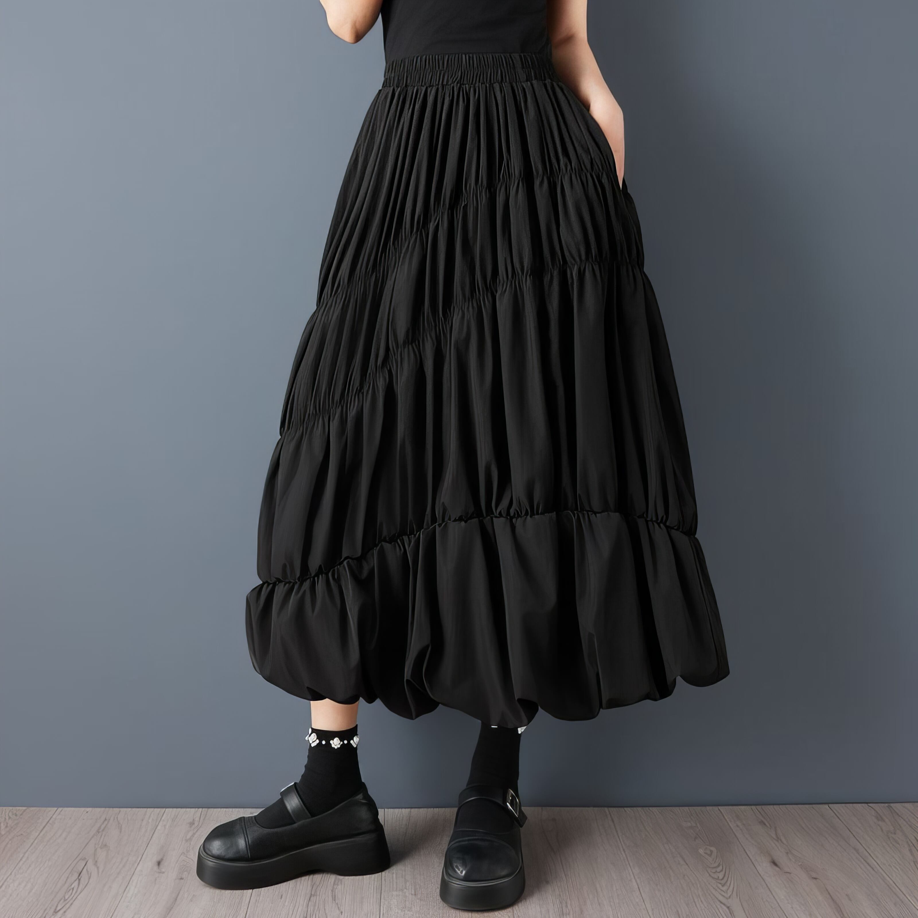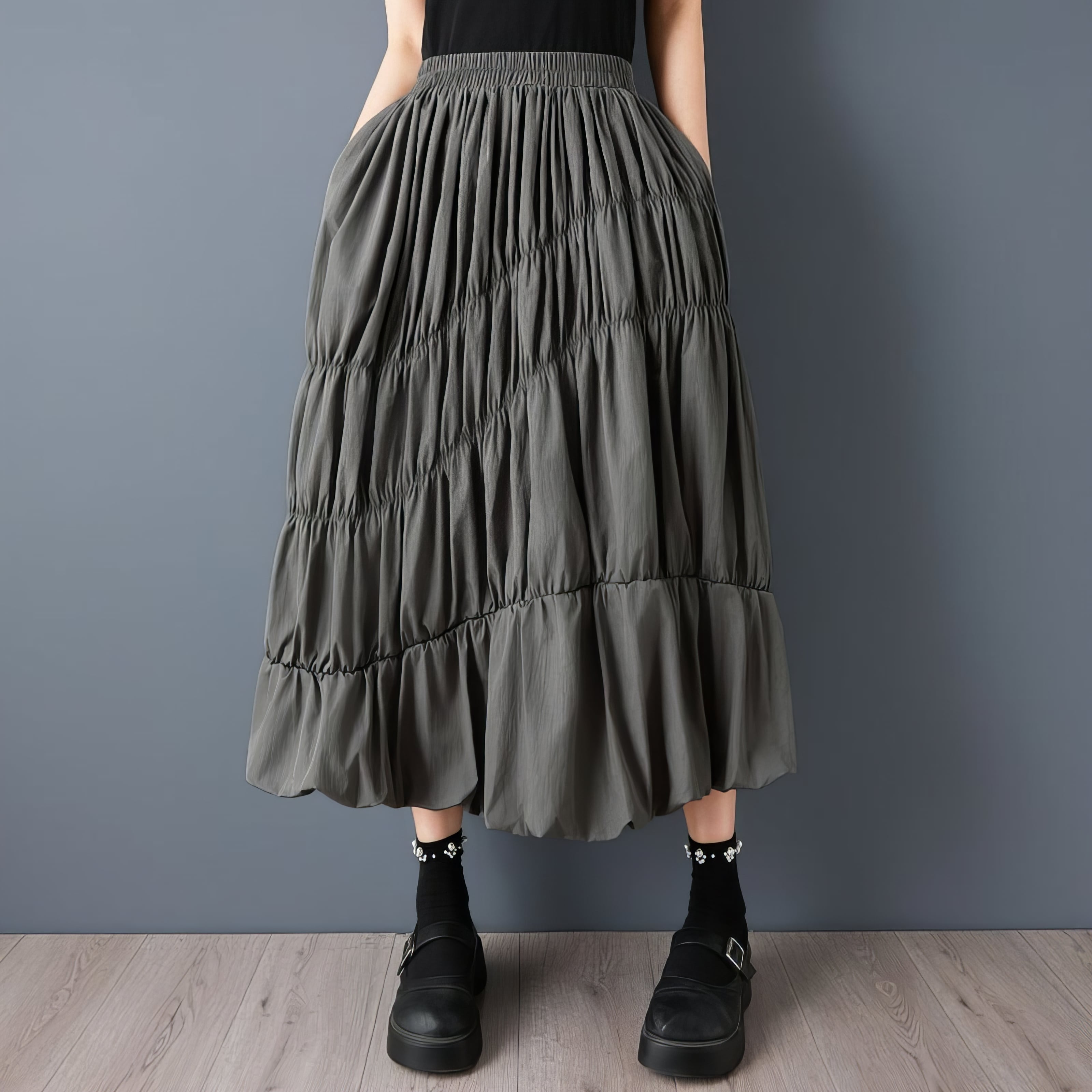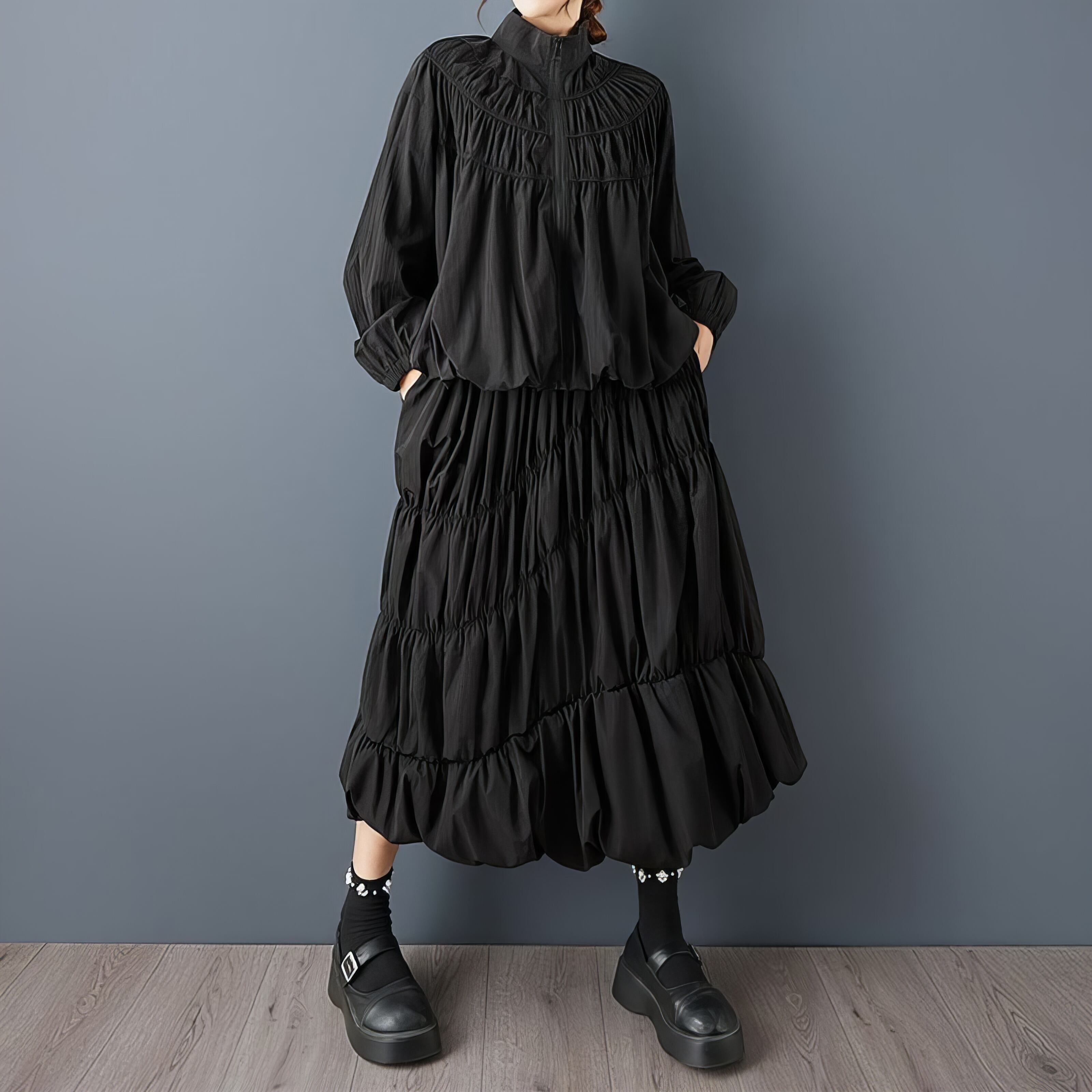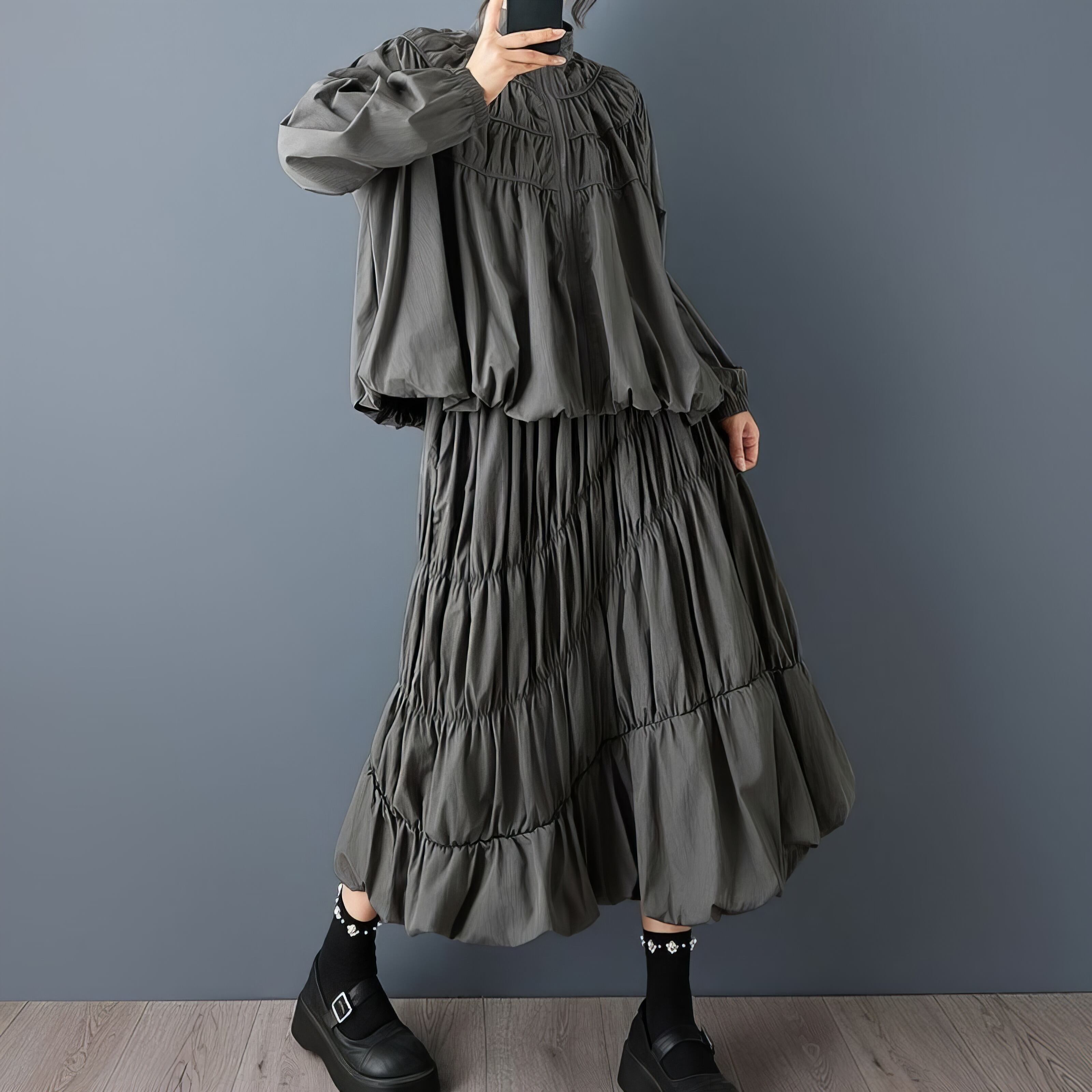 全体にたっぷりと入れたギャザーが、ふんわりとした立体感をつくるデザイン。 丸みのあるシルエットで、存在感がありながら重たく見えにくいバランスに。 単品でも使いやすく、上下で合わせるとバランスの整った着こなしが楽しめます。 ※attention※ ---------------------------------------- 商品は単品での販売となります。 セットでのご着用をご希望の場合は、それぞれをお求めください。 ---------------------------------------- 【サイズ】 ・トップス F 肩幅:56cm 胸囲:128cm 着丈:57cm 袖丈:52cm ・スカート F ウエスト:66-106cm ヒップ:172cm スカート丈:81cm ※モデル:F 着用 (身長:160cm 体重:51kg) ※手採寸のため1-3cmの誤差が生じることがございます。 【種類】 ・トップス ・スカート 【カラー】 ・グレー ・ブラック ・ホワイト 【素材】 ・ポリエステル ・その他 ■大人気 *Hot item* をご紹介 https://shop.morebelle.com/categories/6319500 ■MoreBelleでおしゃれをお楽しみください。 下記URLよりコレクションをチェック https://shop.morebelle.com 【お届けについて】 こちらの商品は海外店舗より直接発送となる為、 ご注文から 1~4週間(平均2週間)前後で発送いたします。 ■注意事項 ・タイミングによっては 商品在庫切れにより 注文キャンセルとさせていただく恐れもございますので、予めご了承くださいませ。 ・こちらは輸入品となります。日本製とは検品基準が異なる為、 新品未使用品でもごくわずかな汚れや ほつれがある場合もございます。 ・仕入れ工場を変えることがあるため、記載サイズと若干異なる場合がございます。 ・商品の色味は、お使いのモニター環境によって実物と若干異なる場合がございます。 ・イメージ違いやサイズ交換等、お客さまご都合による交換、返品は対応出来かねます。 ■Instagramで新しいファッションをシェア https://www.instagram.com/morebelle.official ------------------------ ご購入前に「ご利用ガイド」をお読みください →https://shop.morebelle.com/about ------------------------ ※メールアドレスはキャリアメール以外をご入力いただきますよう、ご協力をお願いします。