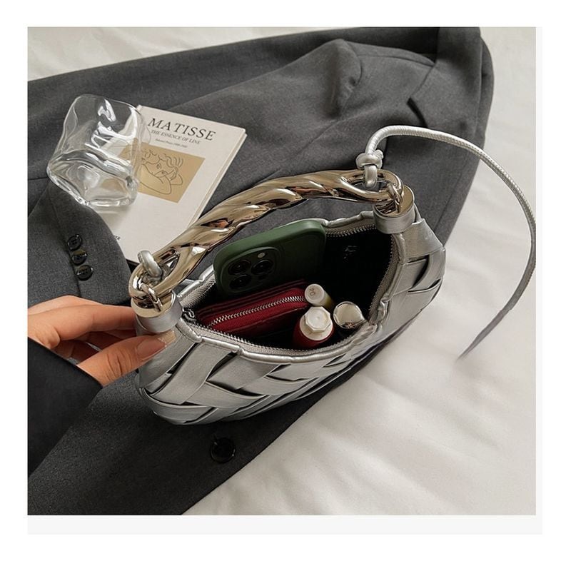 立体的な編み込みデザインが印象的なハンドバッグ。 シンプルなブラックに個性的なメタルハンドルを組み合わせ、モード感のある雰囲気を演出します。 コーディネートにさりげない存在感をプラスするアクセントバッグです。 【サイズ】 One 幅:23cm 高さ:14cm マチ:3cm ※手採寸のため誤差が生じることがございます。 【カラー】 ・ブラック ・ホワイト ・シルバー ・ブラウン 【素材】 ・PU ・その他 ■大人気 *Hot item* をご紹介 https://shop.morebelle.com/categories/6319500 ■MoreBelleでおしゃれをお楽しみください。 下記URLよりコレクションをチェック https://shop.morebelle.com 【お届けについて】 こちらの商品は海外店舗より直接発送となる為、 ご注文から 1~4週間(平均2週間)前後で発送いたします。 ■注意事項 ・タイミングによっては 商品在庫切れにより 注文キャンセルとさせていただく恐れもございますので、予めご了承くださいませ。 ・こちらは輸入品となります。日本製とは検品基準が異なる為、 新品未使用品でもごくわずかな汚れや ほつれがある場合もございます。 ・仕入れ工場を変えることがあるため、記載サイズと若干異なる場合がございます。 ・商品の色味は、お使いのモニター環境によって実物と若干異なる場合がございます。 ・イメージ違いやサイズ交換等、お客さまご都合による交換、返品は対応出来かねます。 ■Instagramで新しいファッションをシェア https://www.instagram.com/morebelle.official ------------------------ ご購入前に「ご利用ガイド」をお読みください →https://shop.morebelle.com/about ------------------------ ※メールアドレスはキャリアメール以外をご入力いただきますよう、ご協力をお願いします。