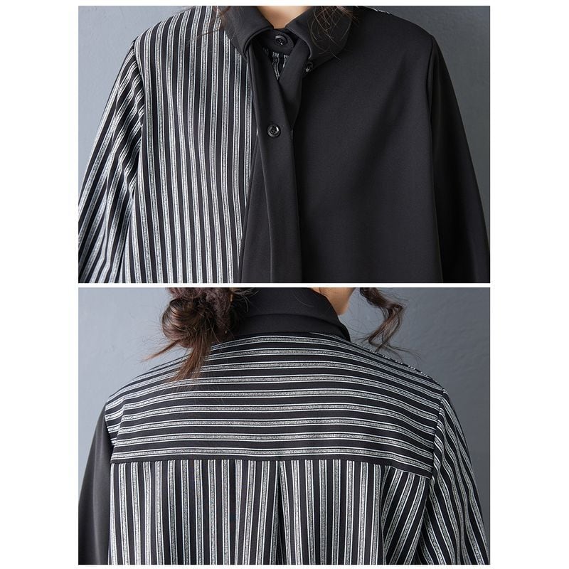 ストライプ切替 ミディ丈 シャツワンピース 00201