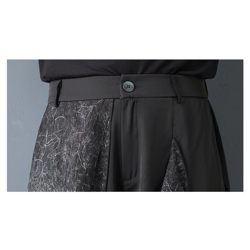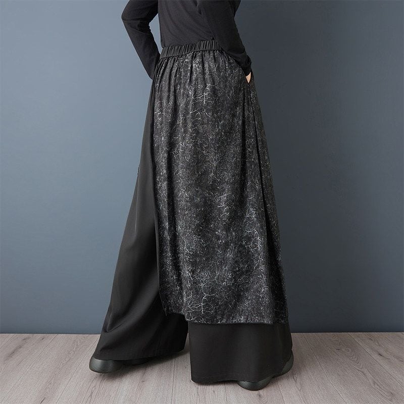 異素材の切替デザインが印象的なワイドパンツ。