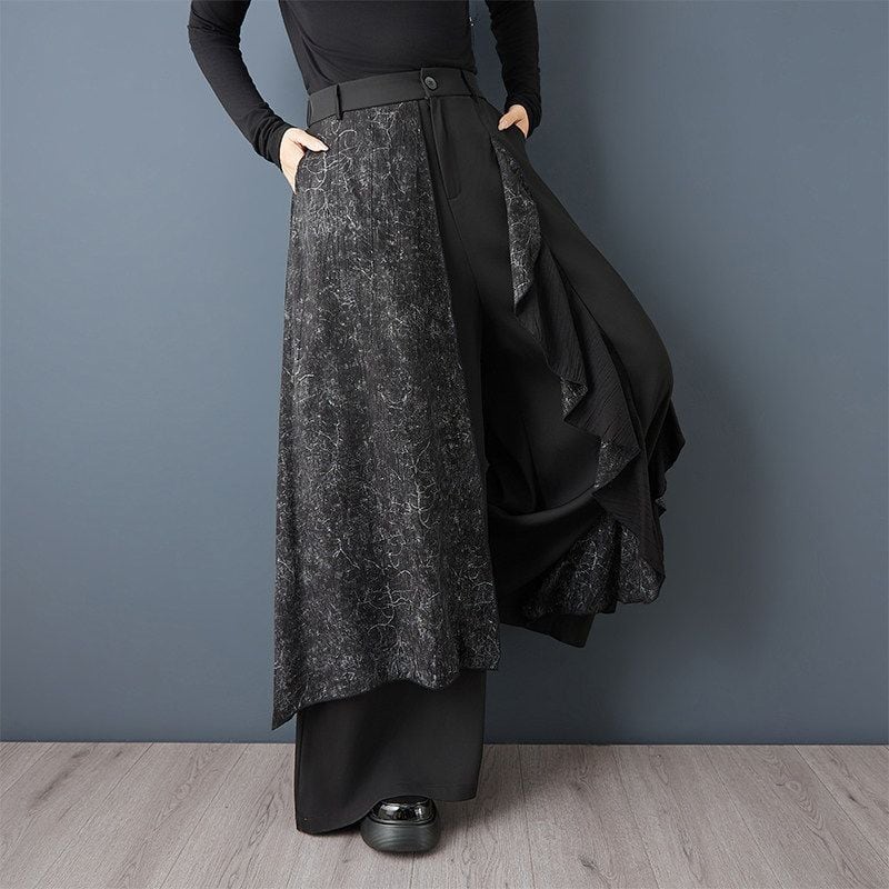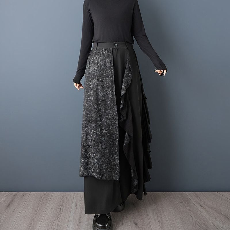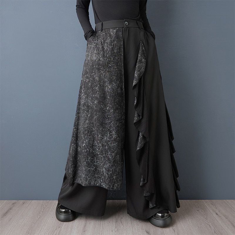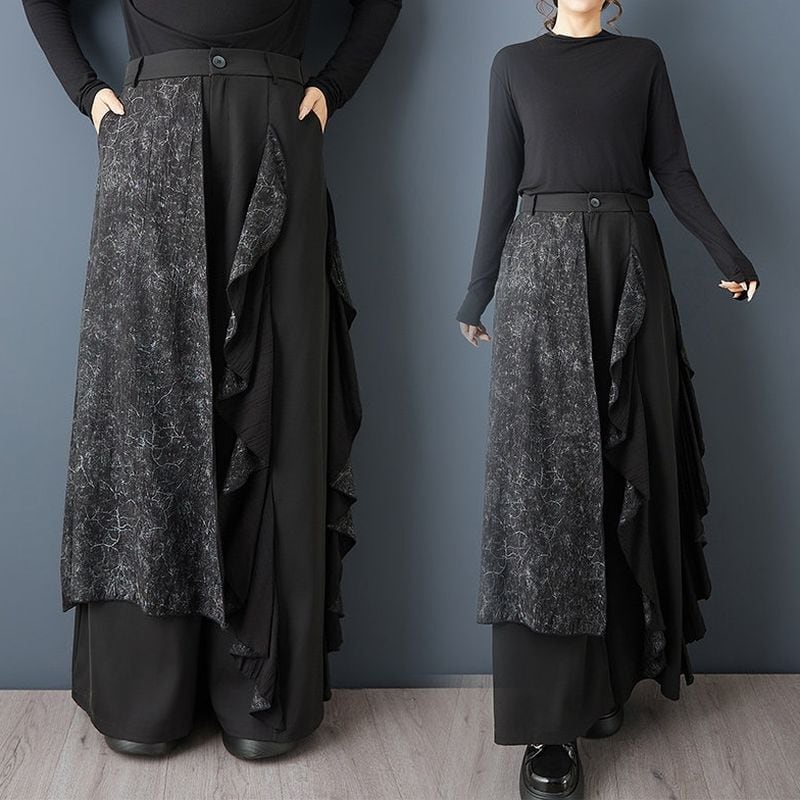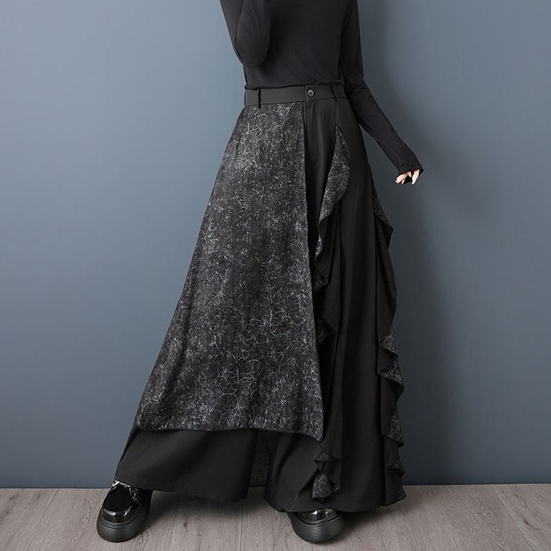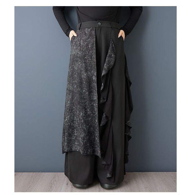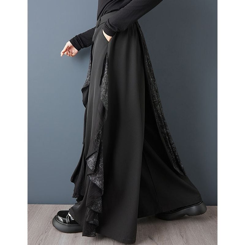切替デザイン フリル ワイドパンツ 00371
