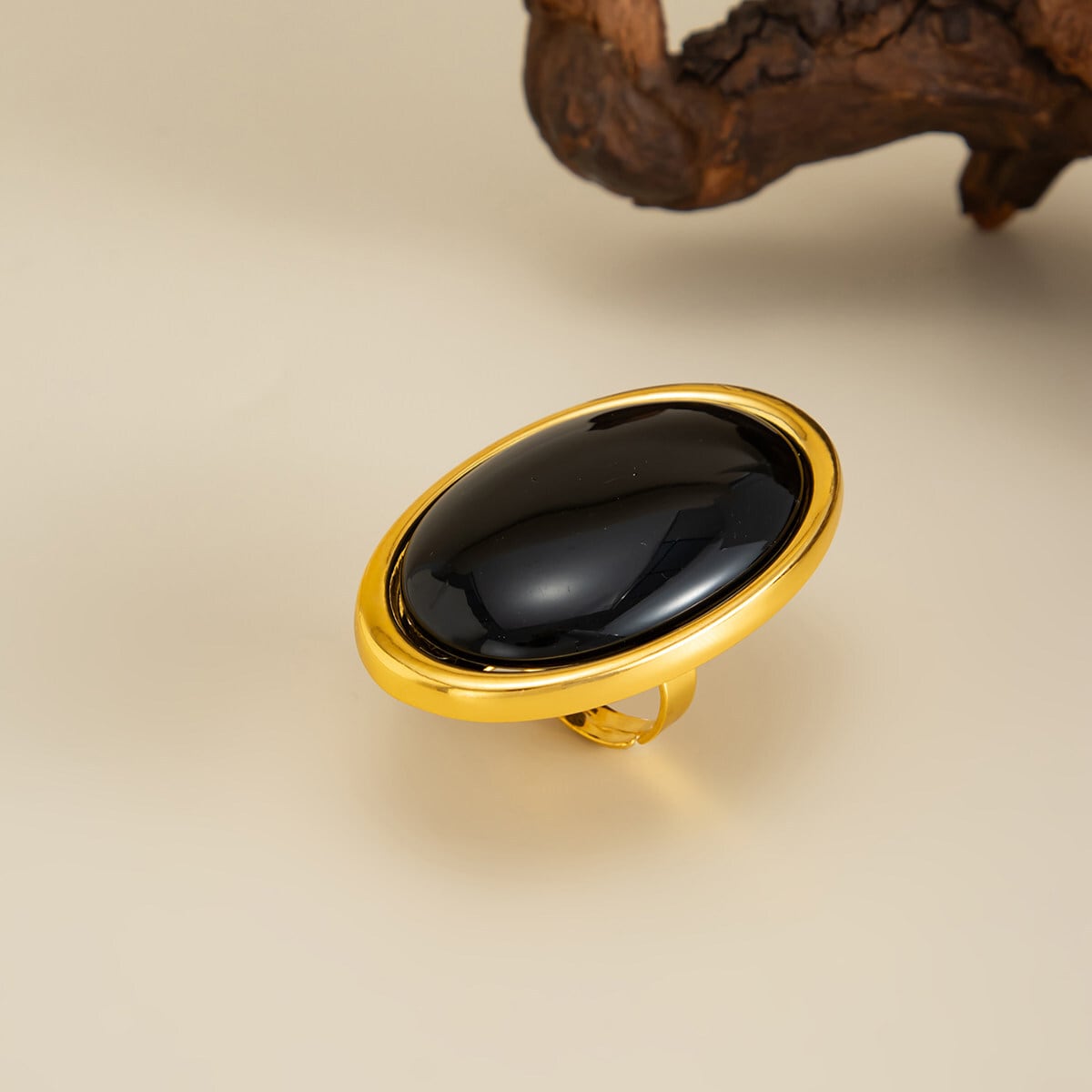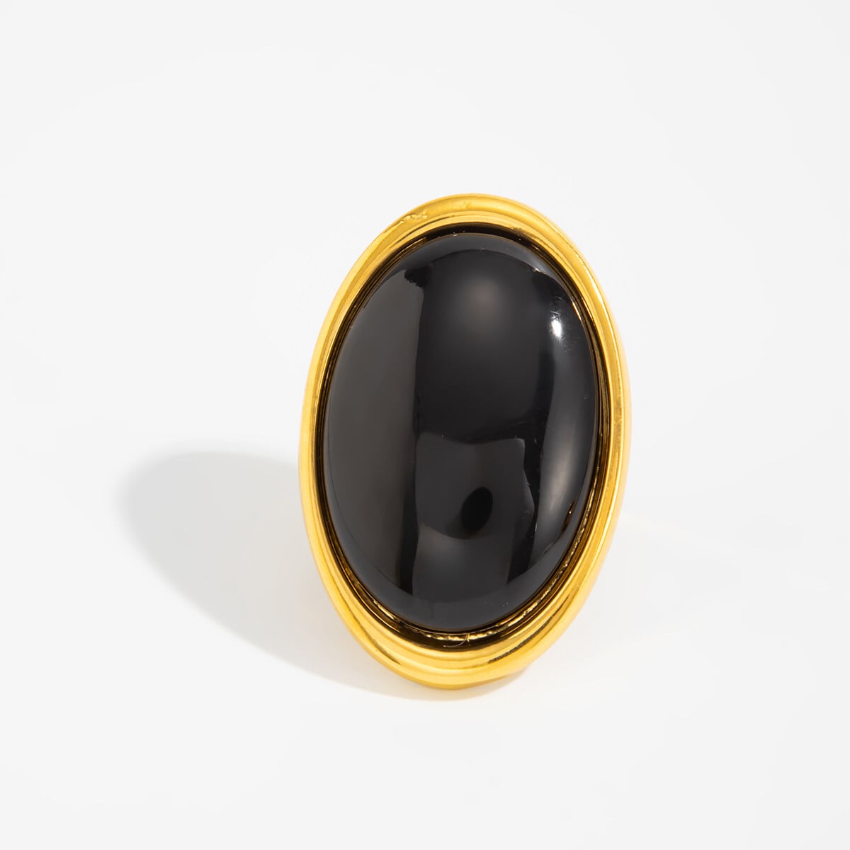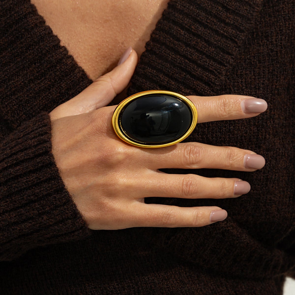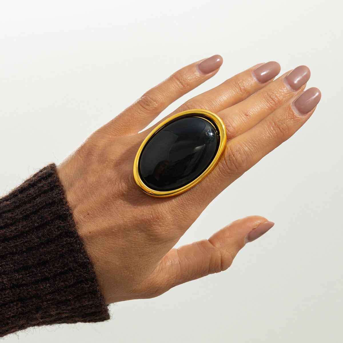 大ぶりのオーバルストーンが印象的なデザインリング。