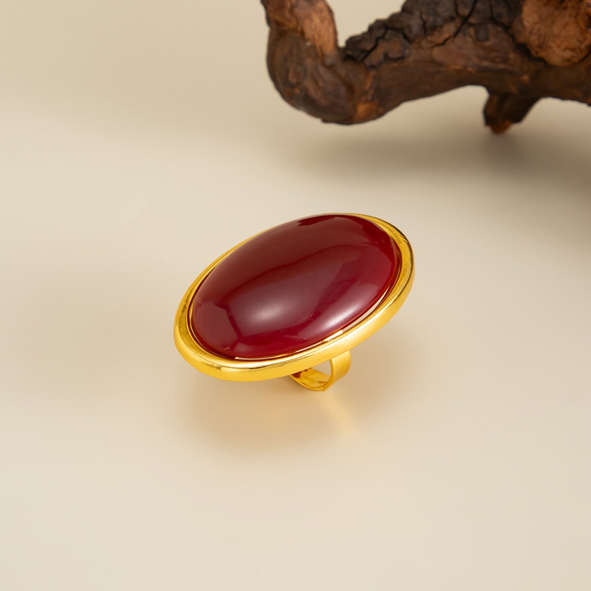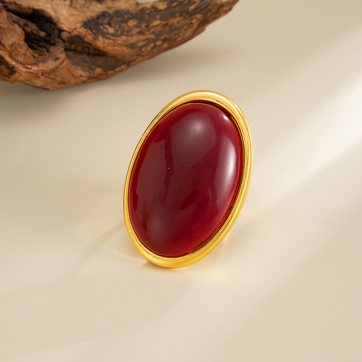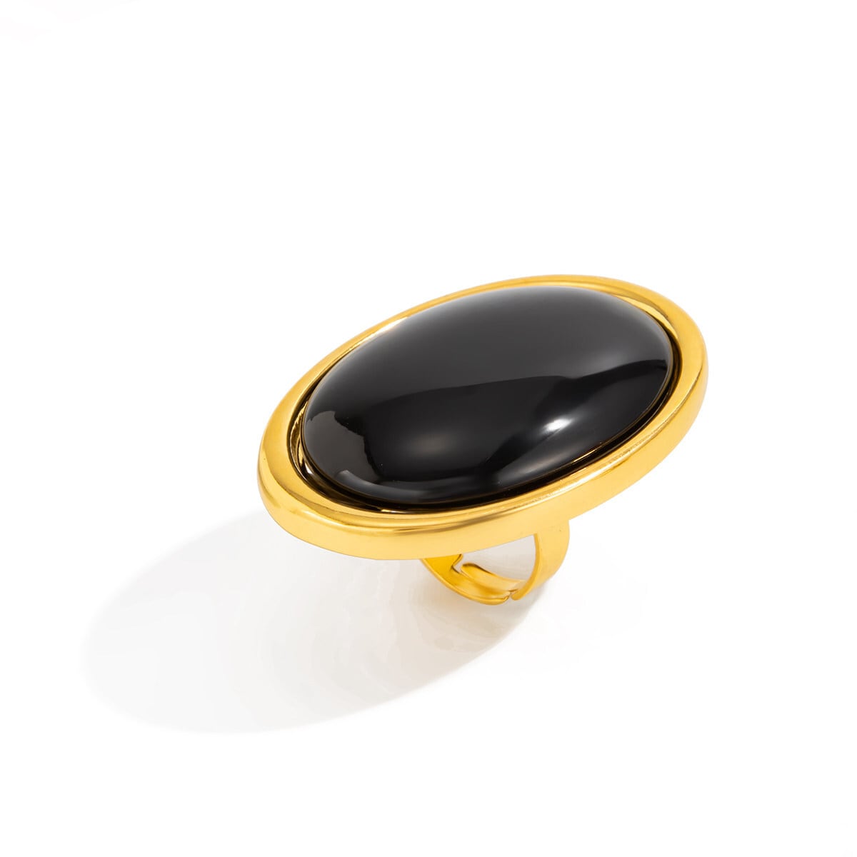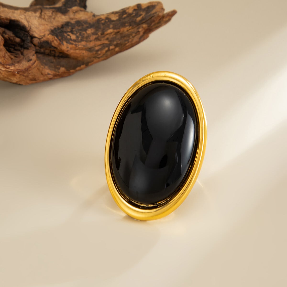 大ぶりのオーバルストーンが印象的なデザインリング。