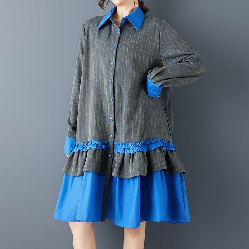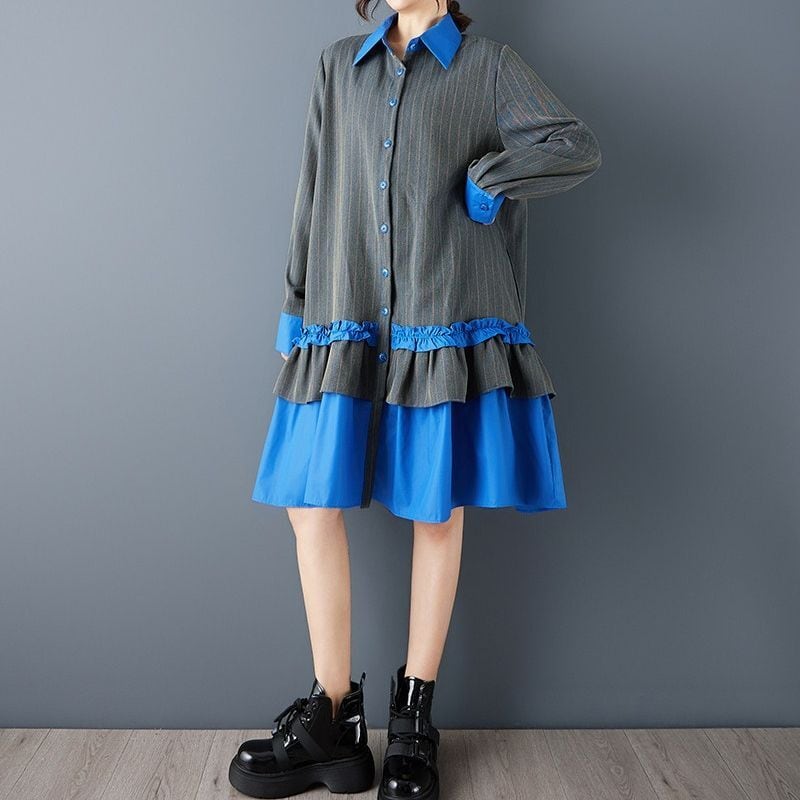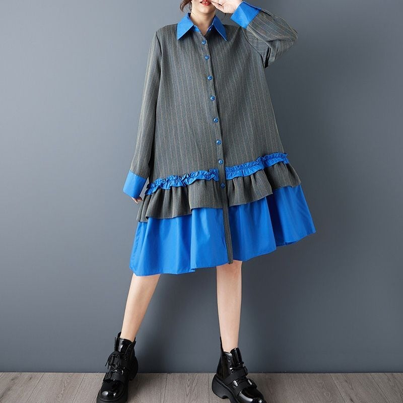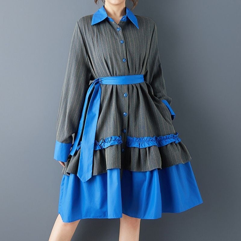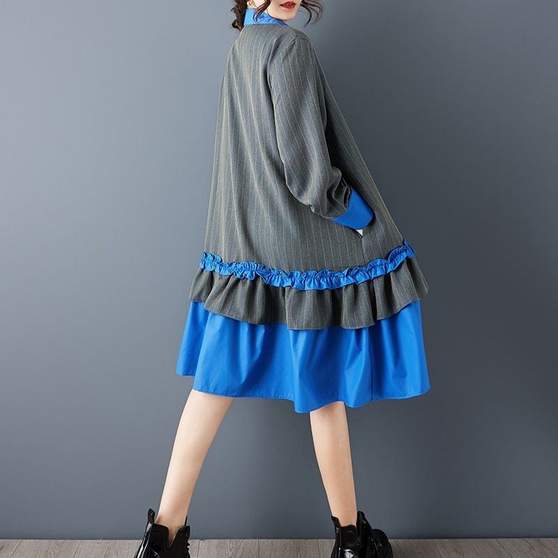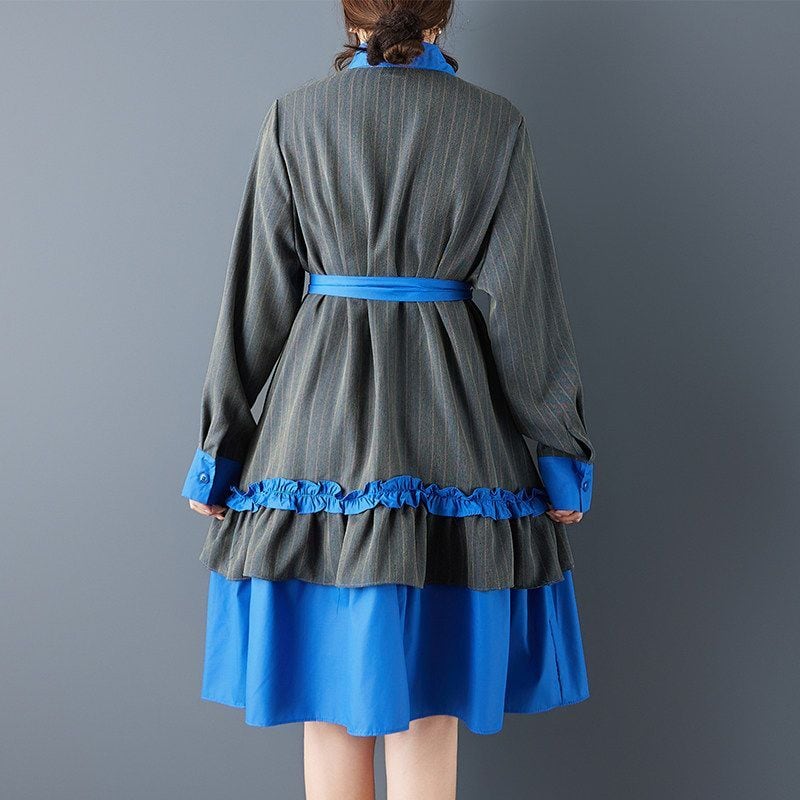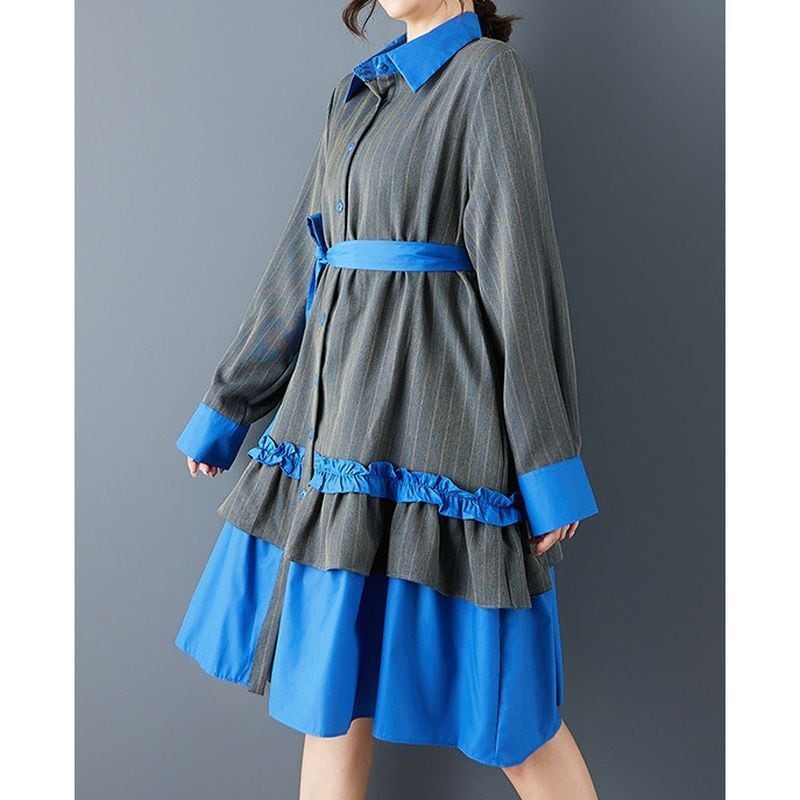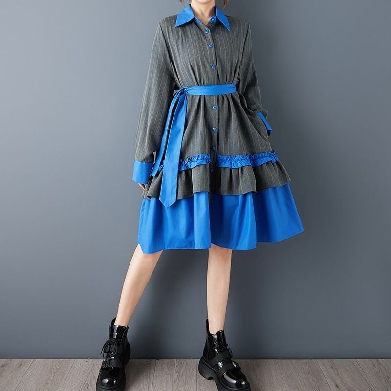 ストライプ 配色 ティアードワンピース 00373