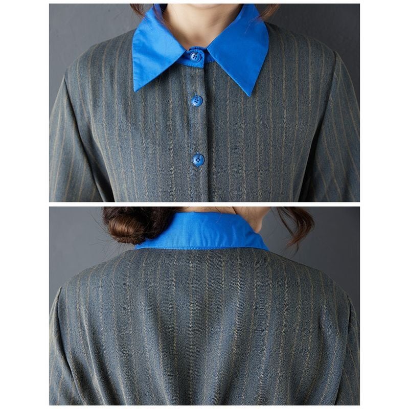 ストライプ柄に配色デザインを組み合わせたワンピース。