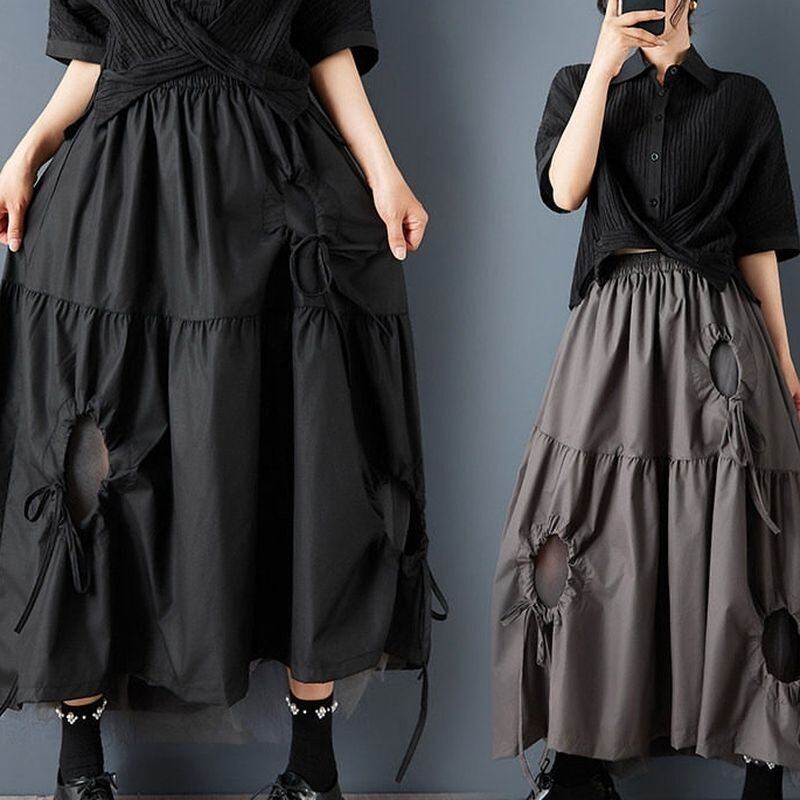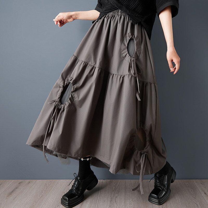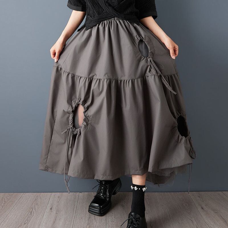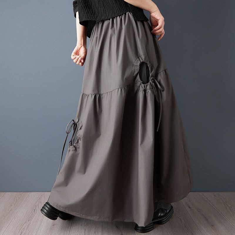 ドローストリングデザインが印象的なロングスカート。
