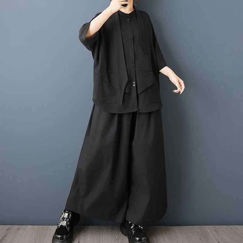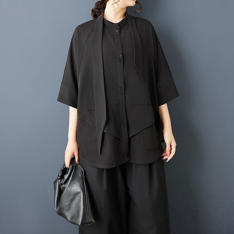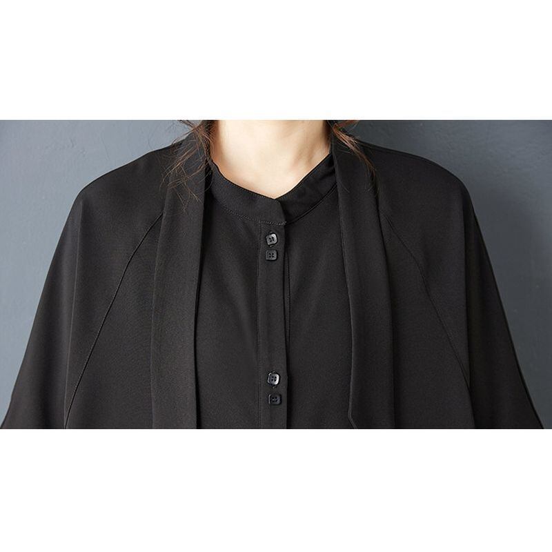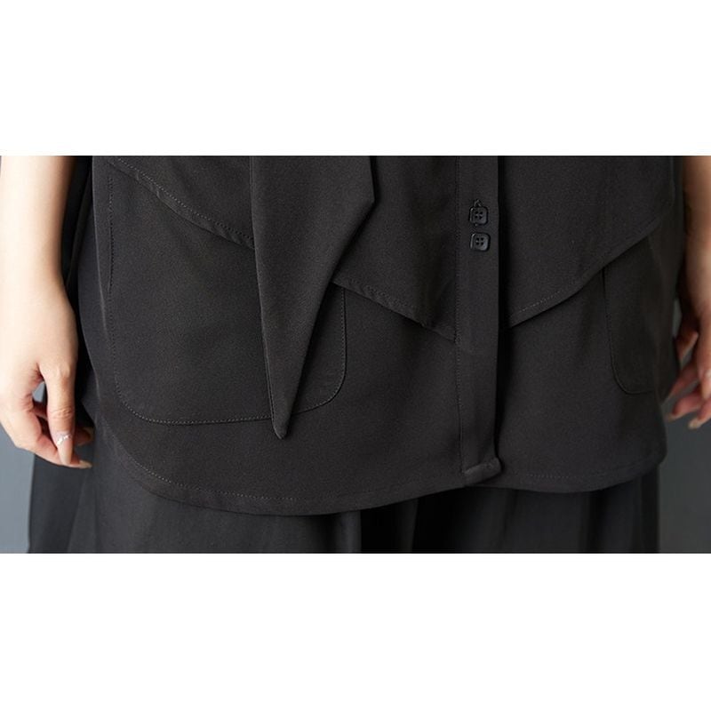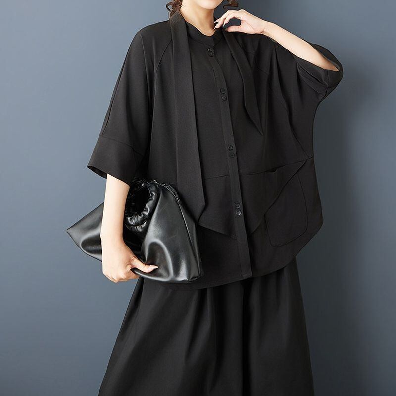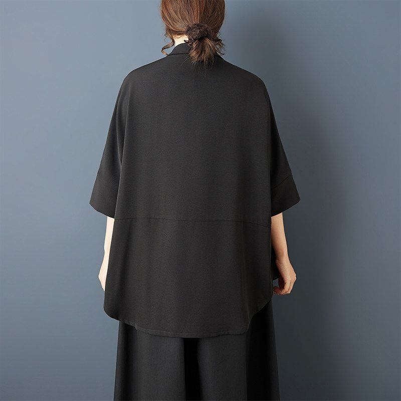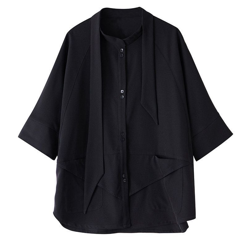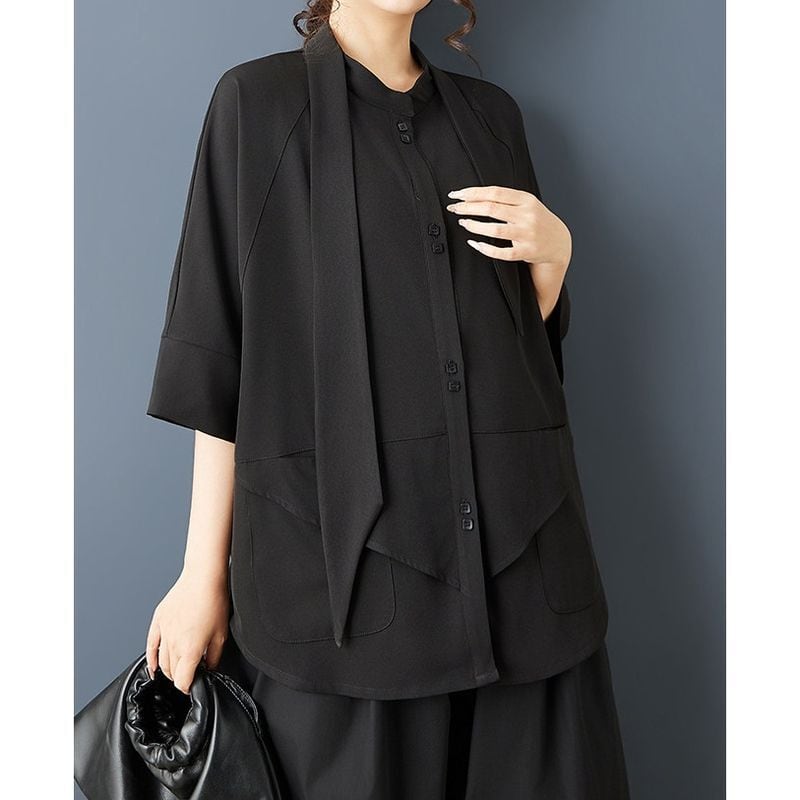 ストールを纏ったようなドレープデザインが印象的なシャツ。