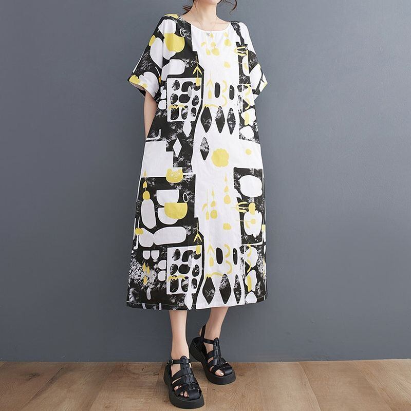 大胆な幾何学デザインが目を引くワンピース。