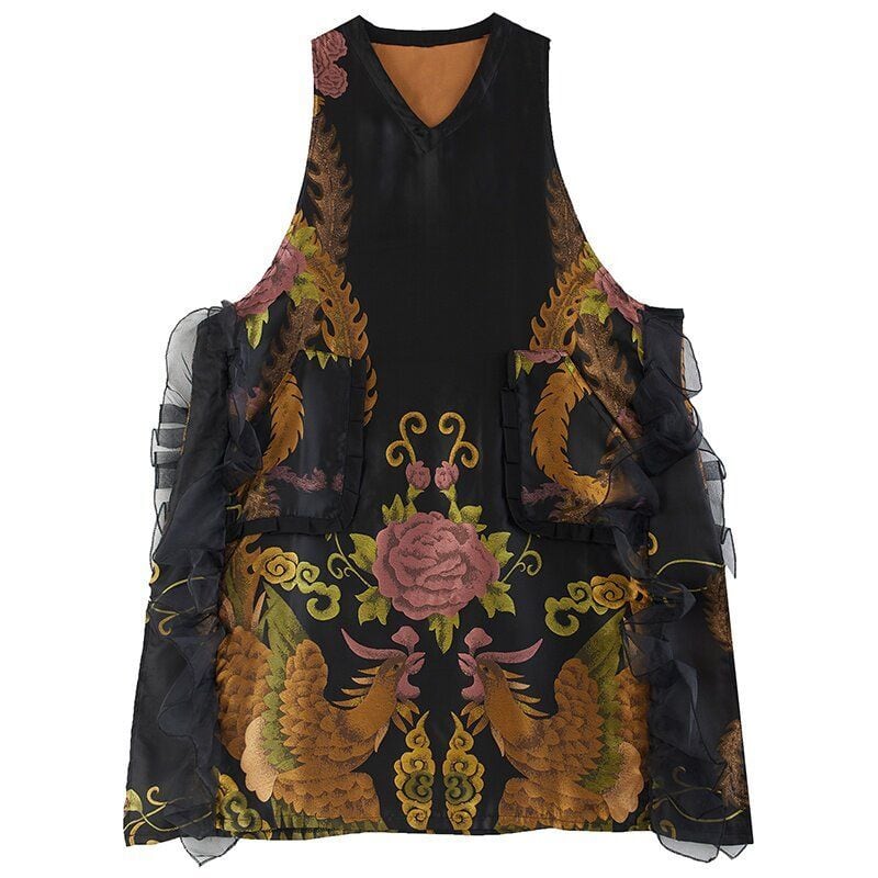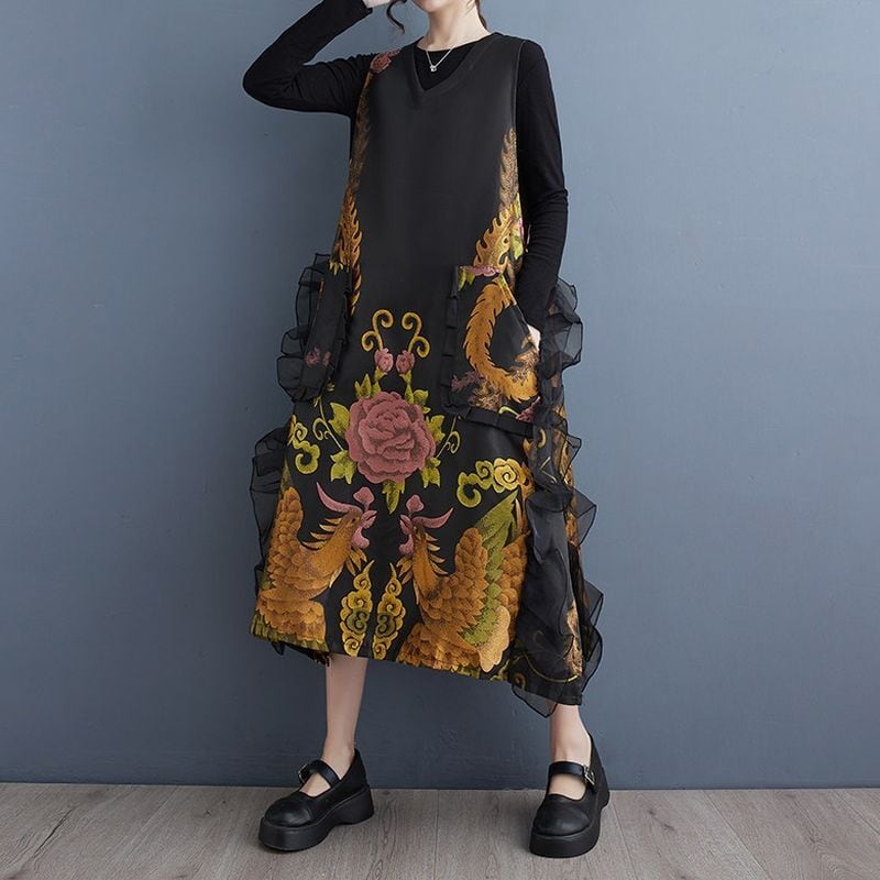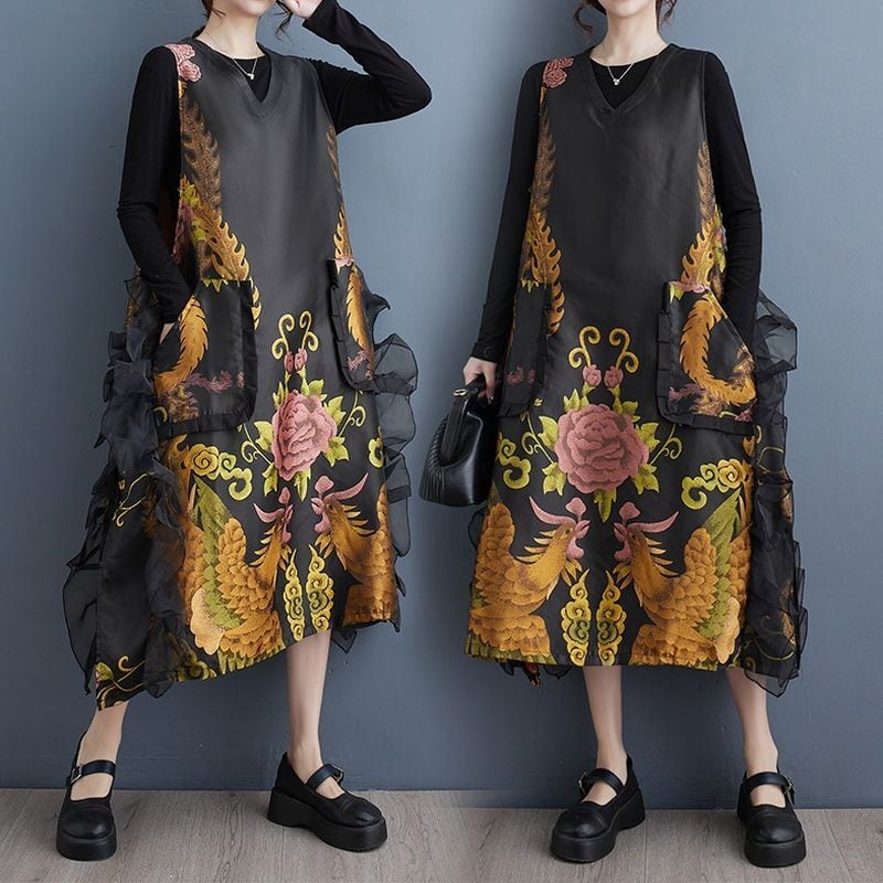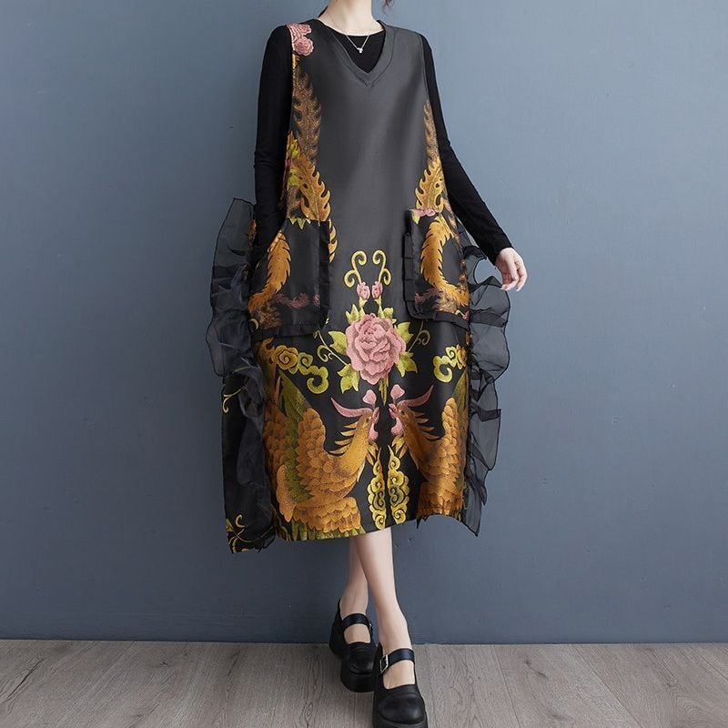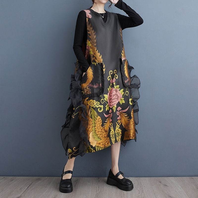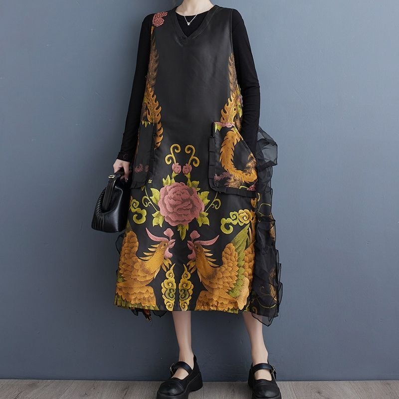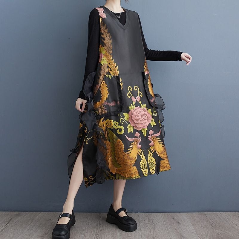 花鳥柄 ノースリーブ ワンピース 00035