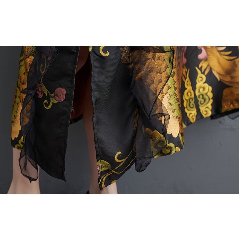 華やかな花鳥柄が目を引く、存在感のある一枚。