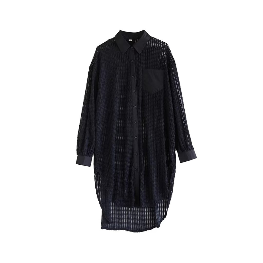 メッシュ シャツカラー ロングシャツ 30255