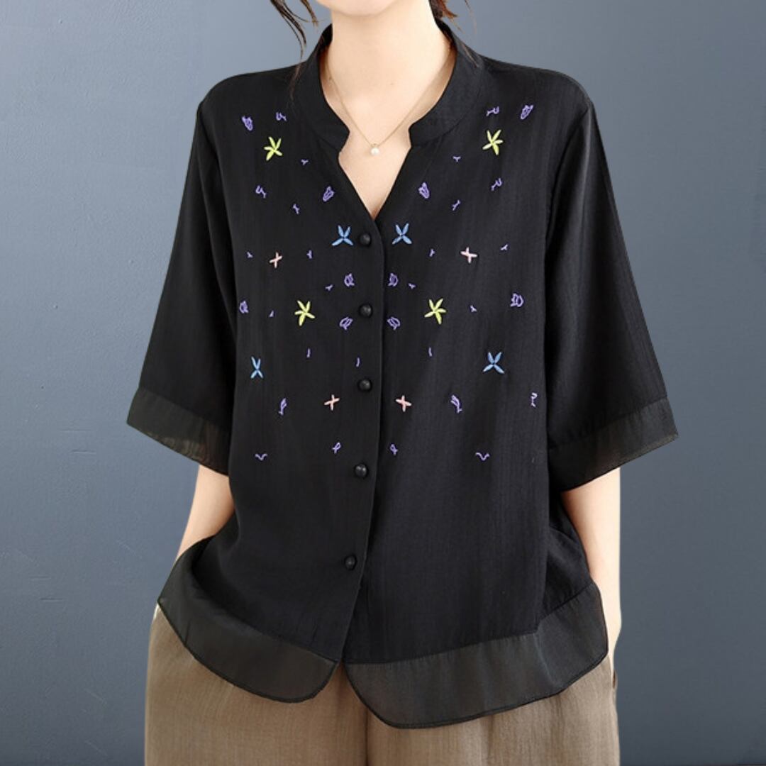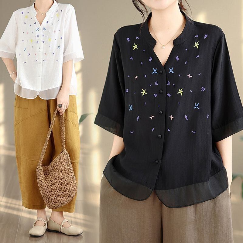 カラフルな刺繍がさりげなく映える、軽やかな印象のブラウス。 シンプルなフォルムに繊細なデザインを重ねることで、やわらかな個性を演出します。 裾のシアー切替が抜け感をプラスし、日常に取り入れやすい一着です。 【サイズ】 M 着丈:61cm 肩幅:42cm 胸囲:108cm 袖丈:33cm L 着丈:62cm 胸囲:112cm 肩幅:43cm 袖丈:33cm XL 着丈:63cm 胸囲:116cm 肩幅:44cm 袖丈:34cm 2XL 着丈:64cm 胸囲:120cm 肩幅:44cm 袖丈:34cm ※手採寸のため1-3cmの誤差が生じることがございます。 【カラー】 ・ブラック ・ホワイト 【素材】 ・コットン ・その他 ■大人気 *Hot item* をご紹介 https://shop.morebelle.com/categories/6319500 ■MoreBelleでおしゃれをお楽しみください。 下記URLよりコレクションをチェック https://shop.morebelle.com 【お届けについて】 こちらの商品は海外店舗より直接発送となる為、 ご注文から 1~4週間(平均2週間)前後で発送いたします。 ■注意事項 ・タイミングによっては 商品在庫切れにより 注文キャンセルとさせていただく恐れもございますので、予めご了承くださいませ。 ・こちらは輸入品となります。日本製とは検品基準が異なる為、 新品未使用品でもごくわずかな汚れや ほつれがある場合もございます。 ・仕入れ工場を変えることがあるため、記載サイズと若干異なる場合がございます。 ・商品の色味は、お使いのモニター環境によって実物と若干異なる場合がございます。 ・イメージ違いやサイズ交換等、お客さまご都合による交換、返品は対応出来かねます。 ■Instagramで新しいファッションをシェア https://www.instagram.com/morebelle.official ------------------------ ご購入前に「ご利用ガイド」をお読みください →https://shop.morebelle.com/about ------------------------ ※メールアドレスはキャリアメール以外をご入力いただきますよう、ご協力をお願いします。