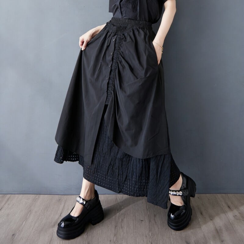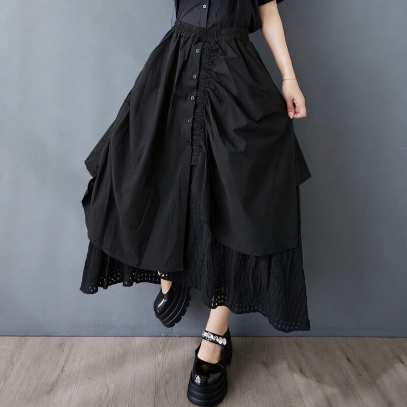 重なりのあるデザインが印象的な、立体感のあるスカート。