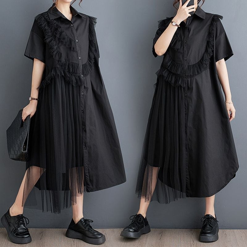 チュールとフリルを重ねた、存在感のあるデザインワンピース。