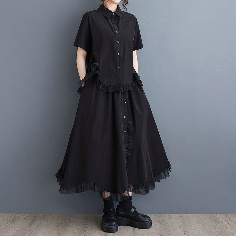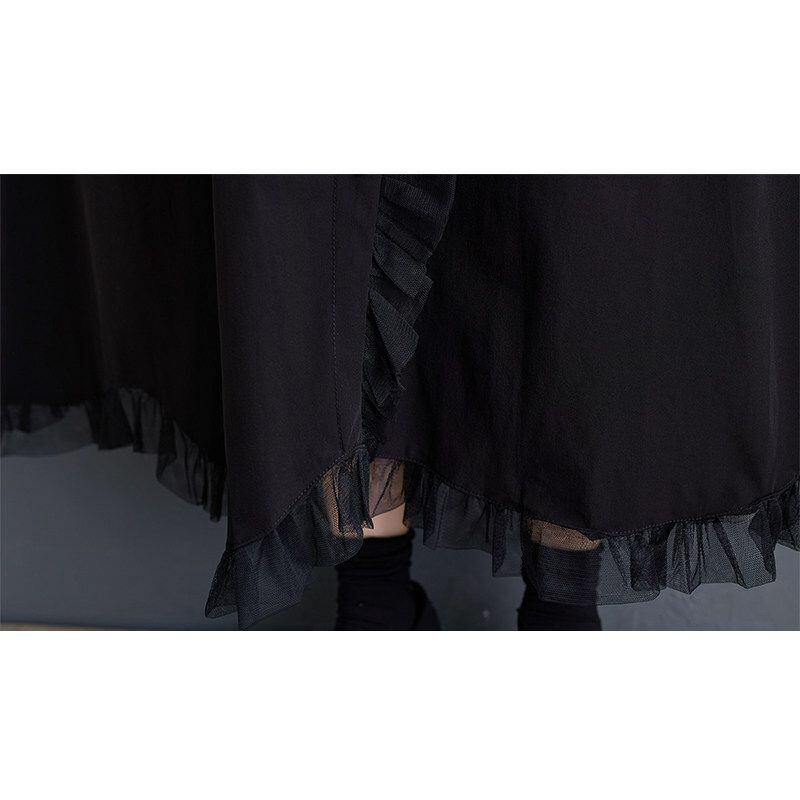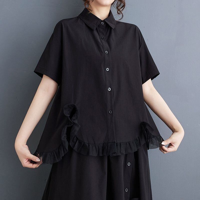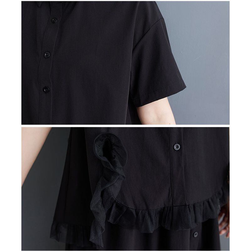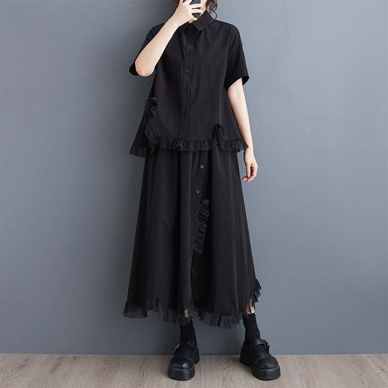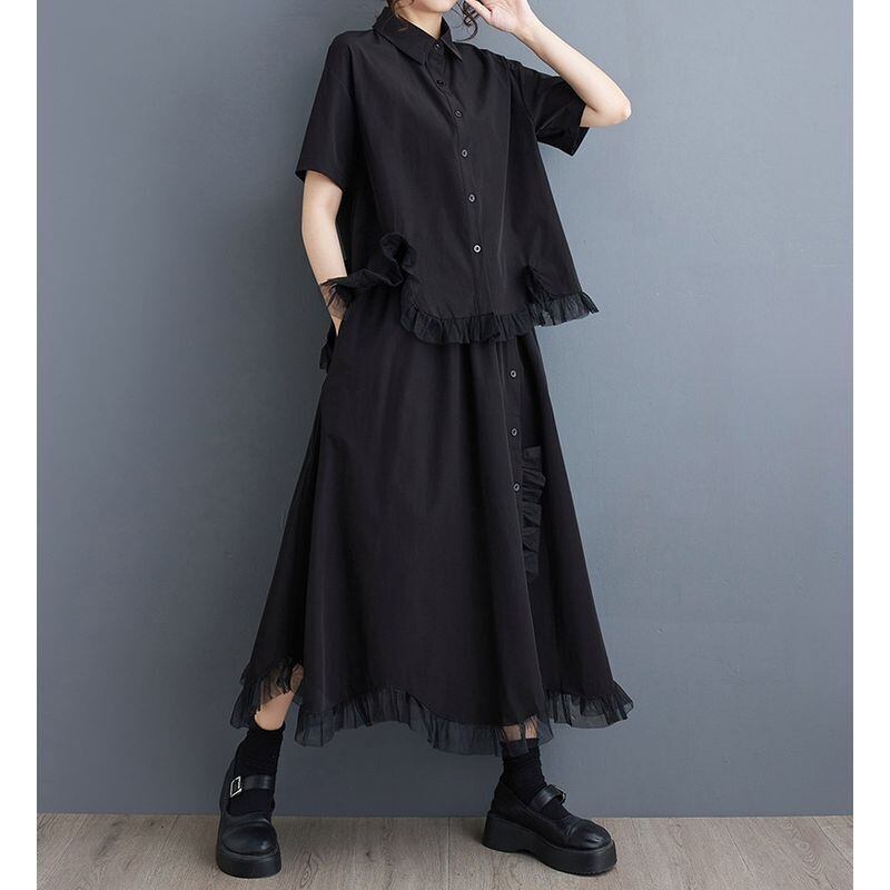 シャツのすっきり感と、チュールの軽やかな動きが印象的なセットアップ。
