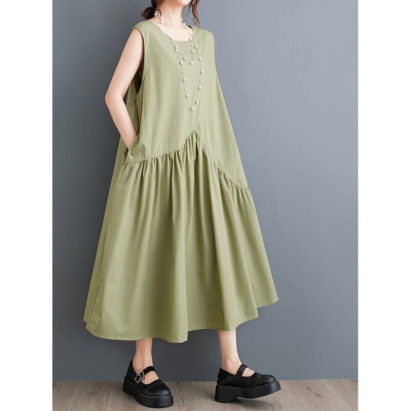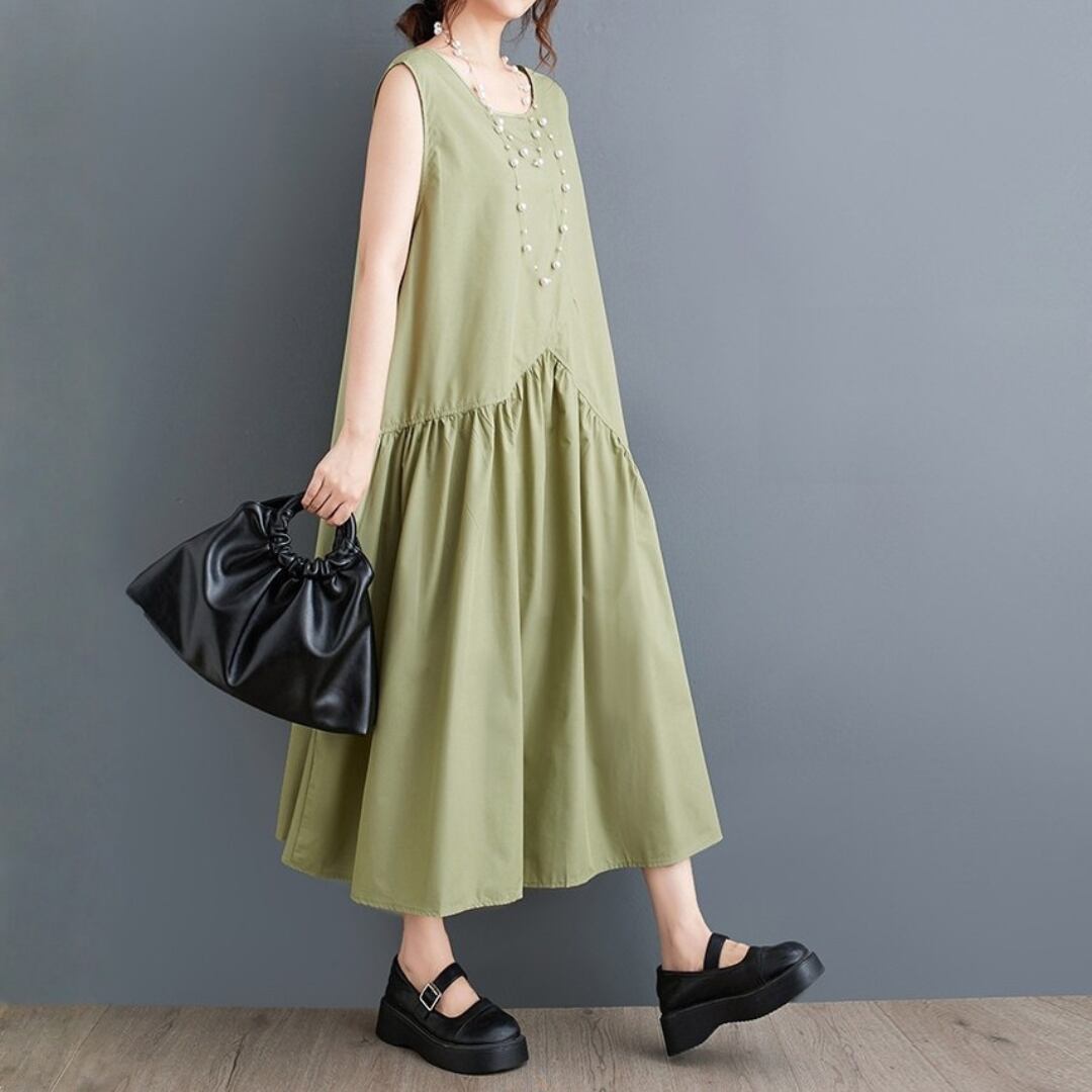 ギャザー切り替え ノースリーブ ワンピース 30104