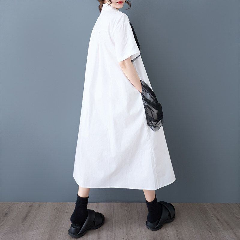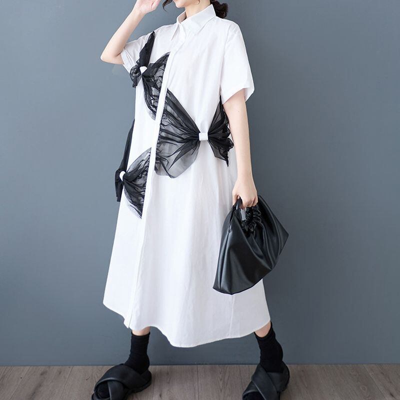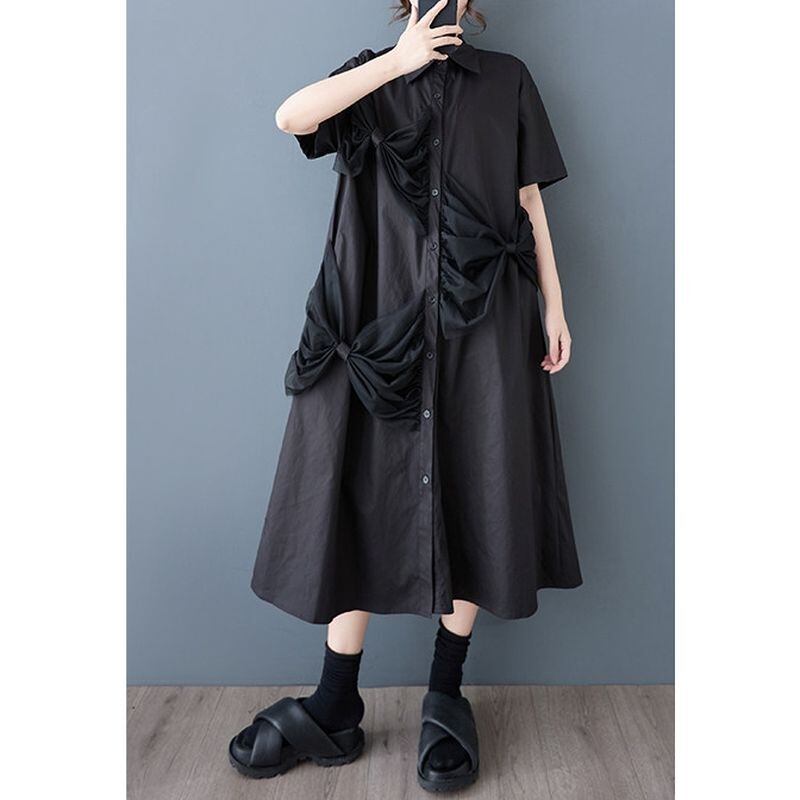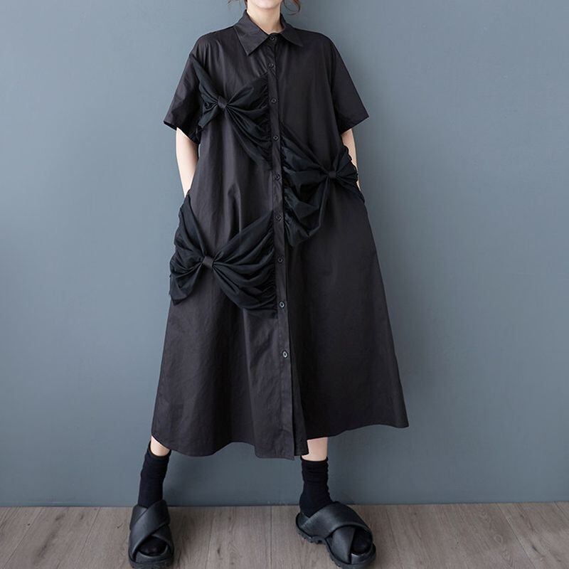 立体的に配置されたリボンデザインが印象的なシャツワンピース。