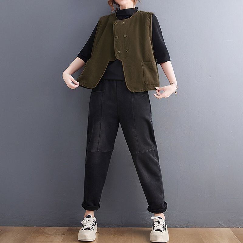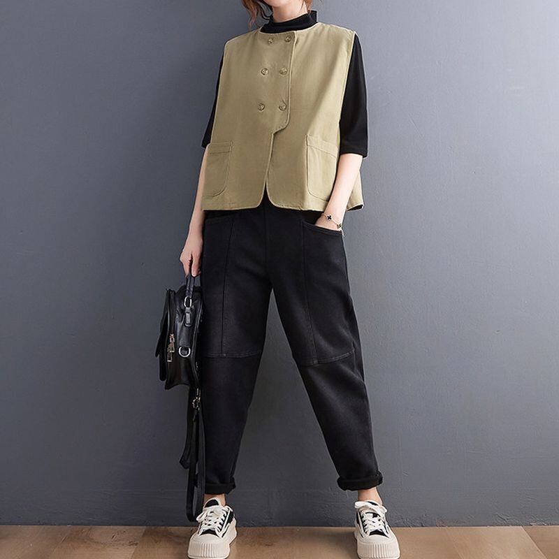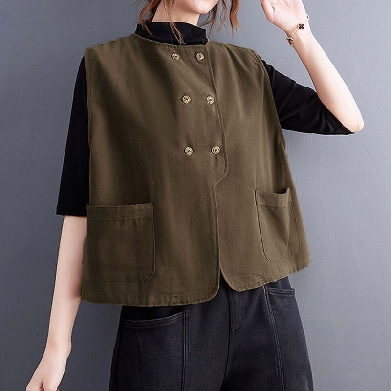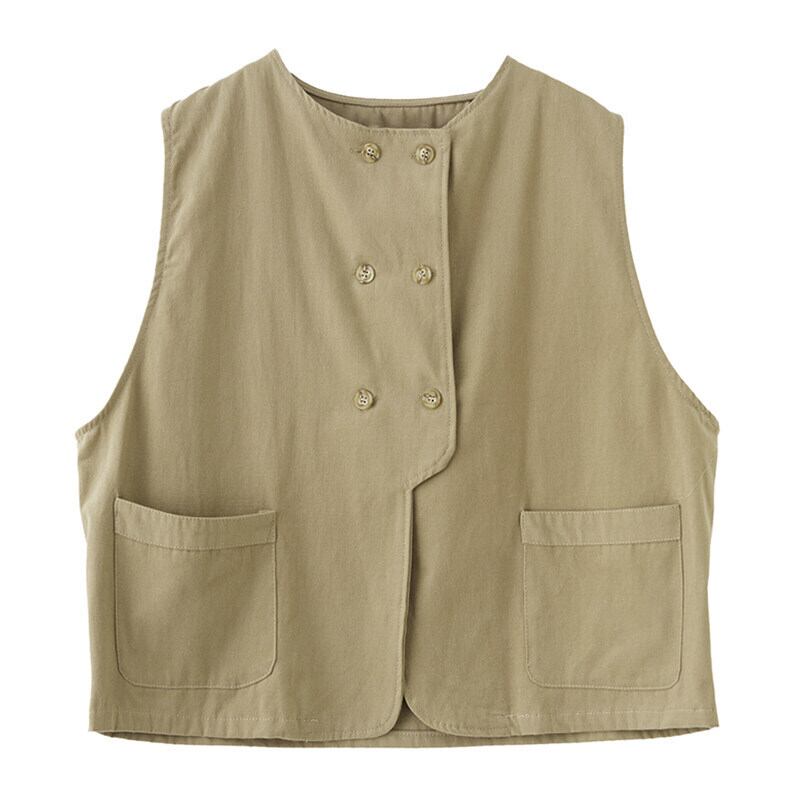 すっきりとしたデザインに、ダブルボタンがアクセントになったベストトップス。