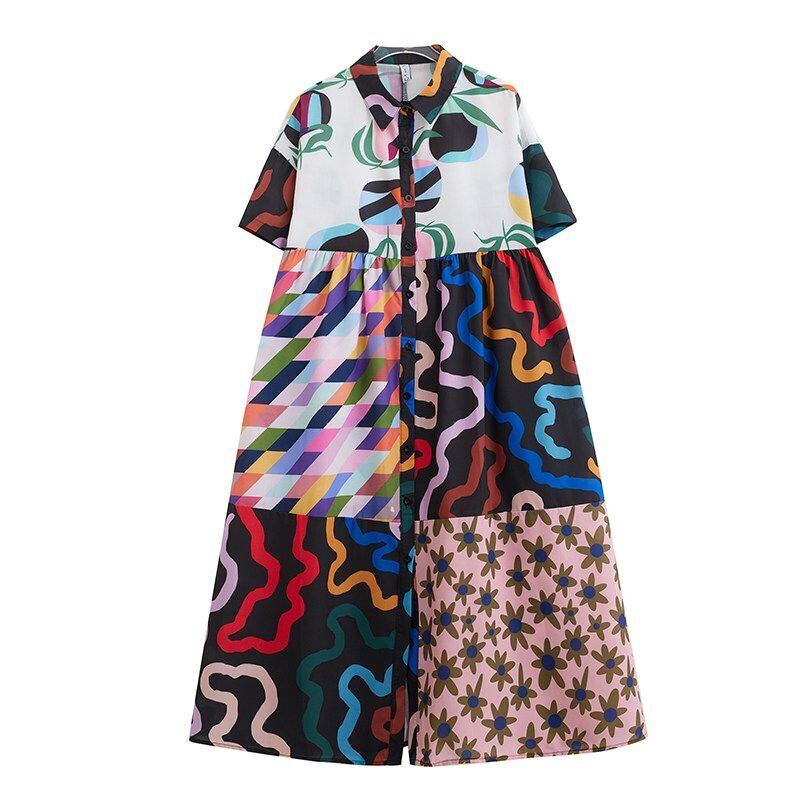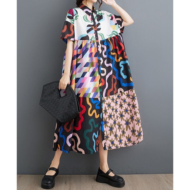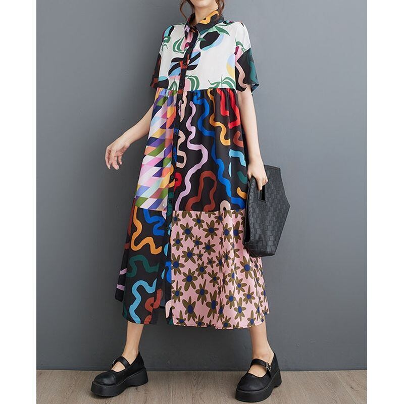 アート柄 切替 シャツワンピース 30043