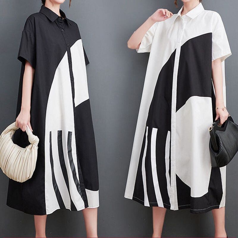 配色アート シャツ ワンピース 30005