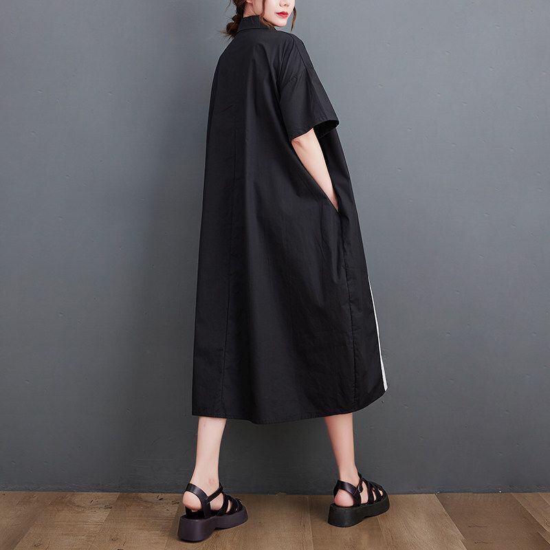 モノトーンの大胆な配色が印象的なシャツワンピース。