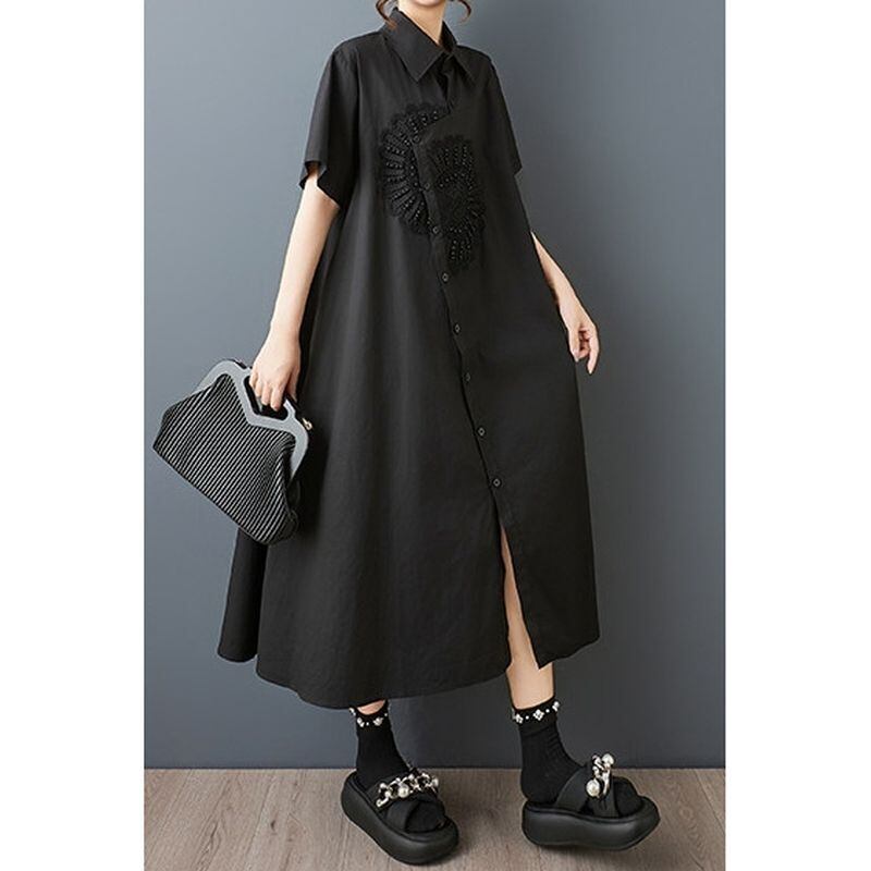 胸元 装飾 シャツワンピース 30070