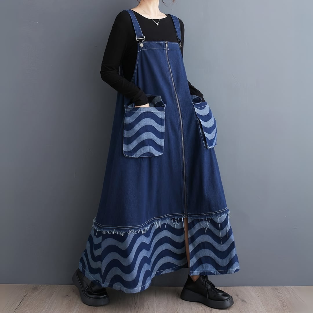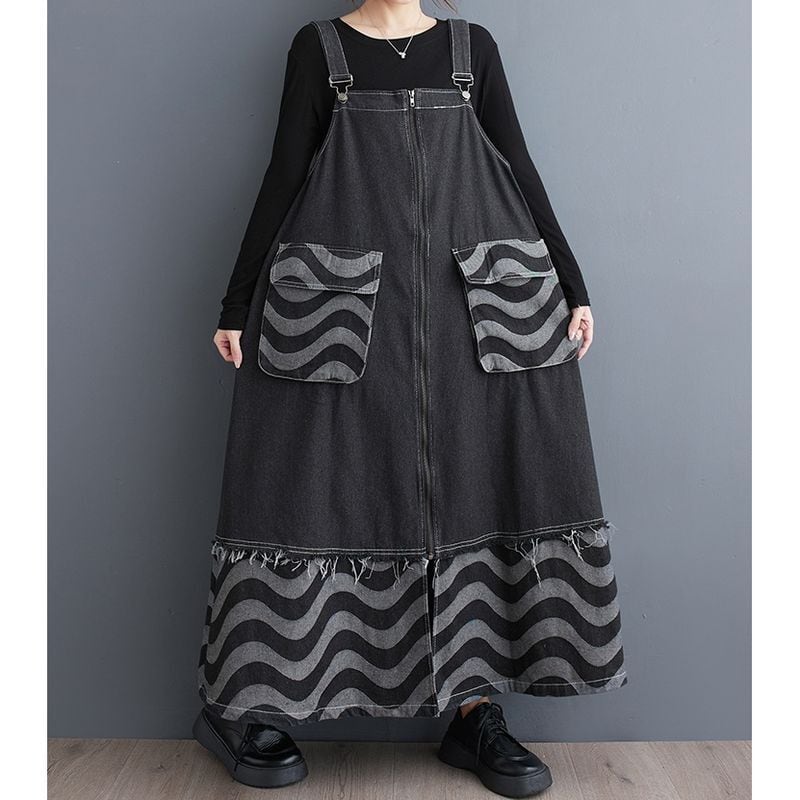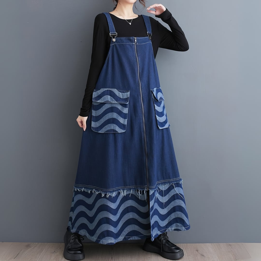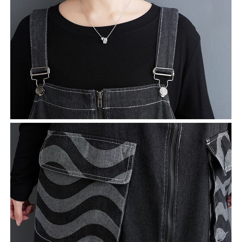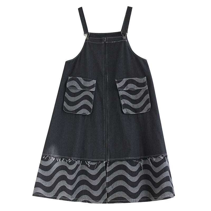 ウェーブ柄 デニム サスペンダー スカート 00004