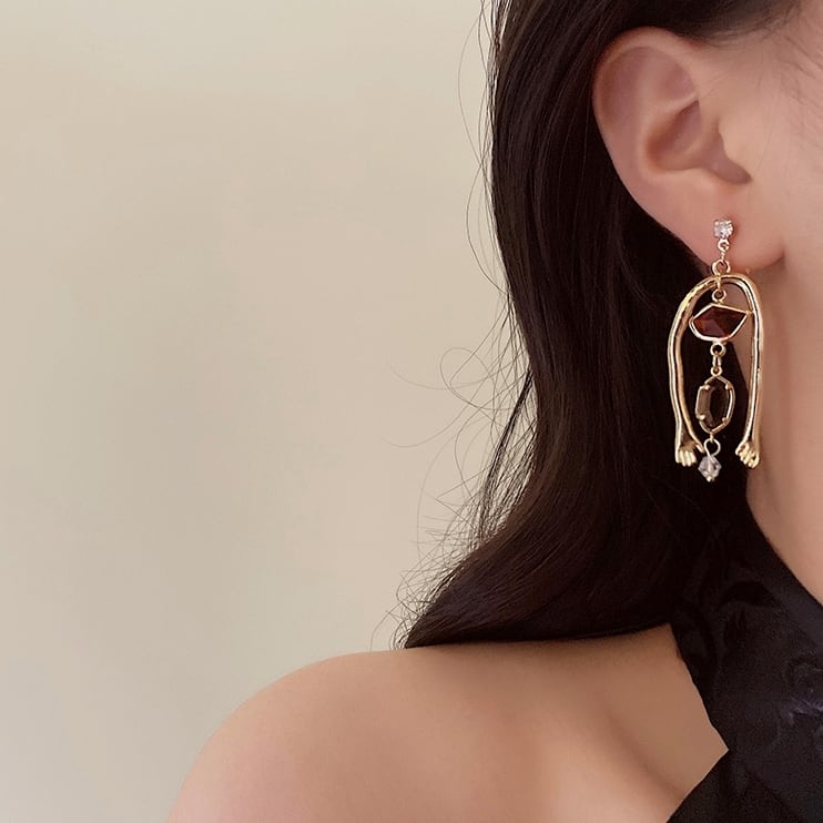 レトロでユニークなスタイルが魅力の女性用ピアス。