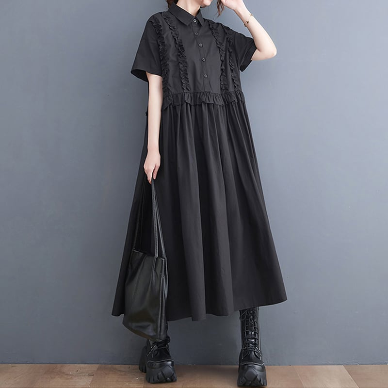 エレガントな雰囲気をプラスするフリル装飾ルーズシャツワンピース。