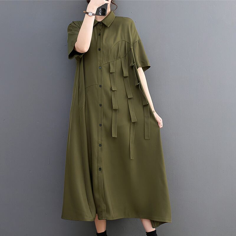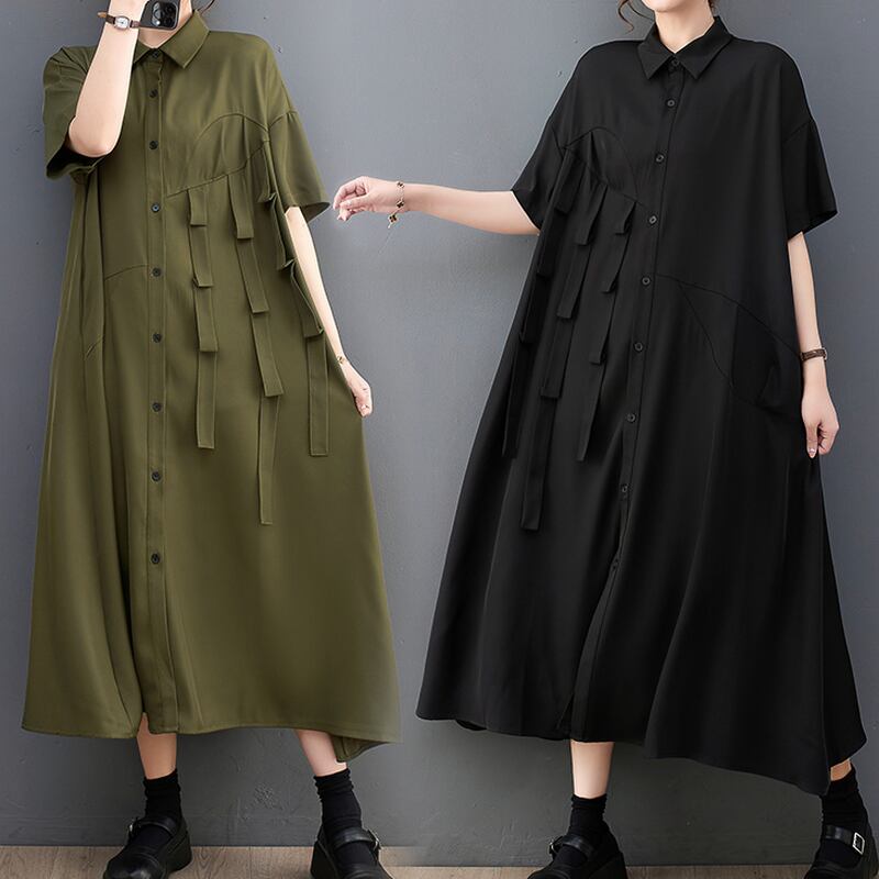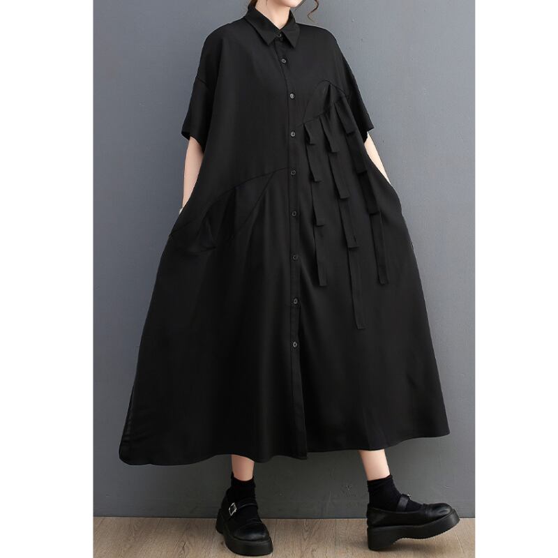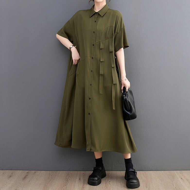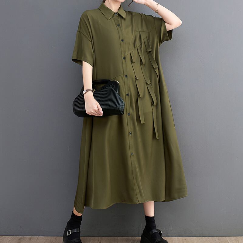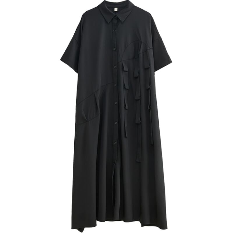 オシャレなサイドフリンジデザインが魅力のルーズシャツワンピース。
