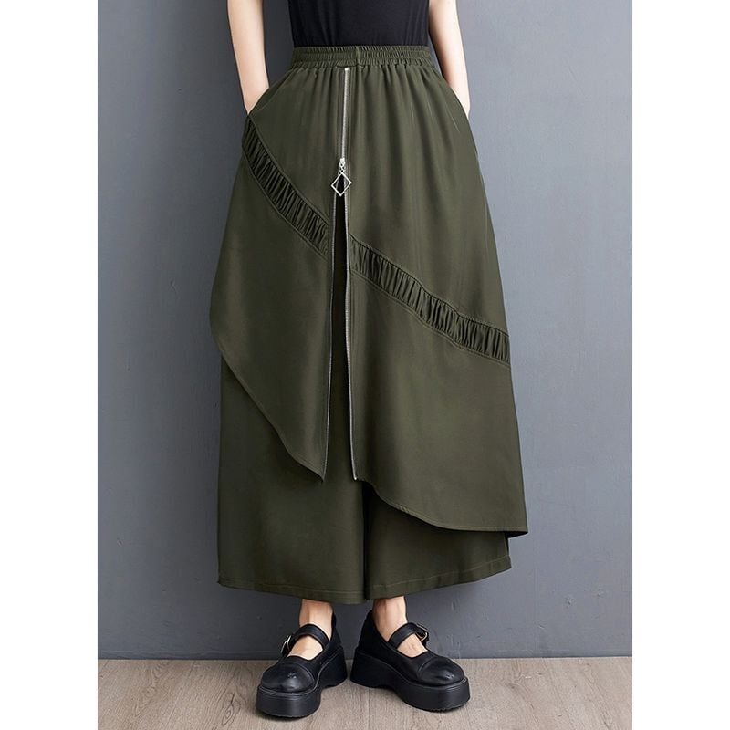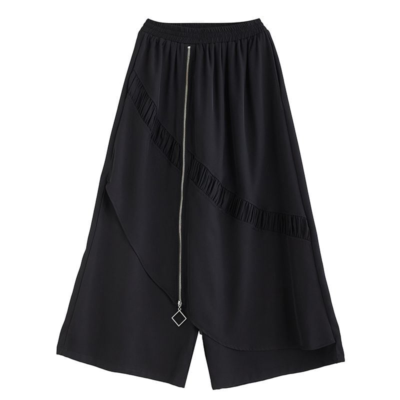 個性的なジッパースプライシングデザインが特徴のワイドレッグパンツ。