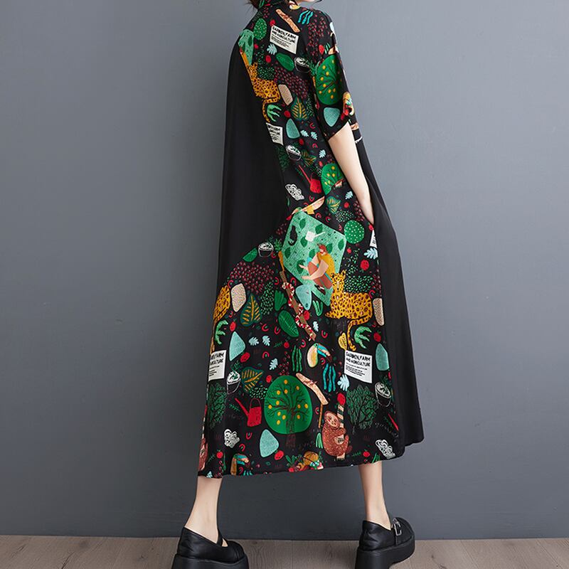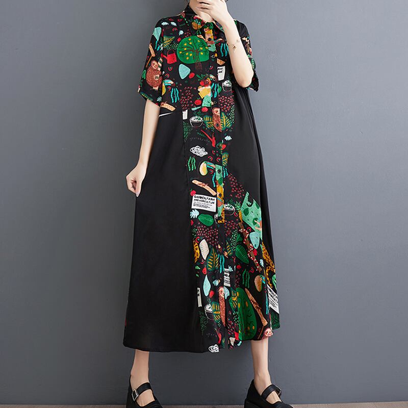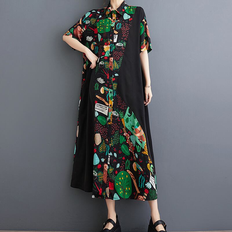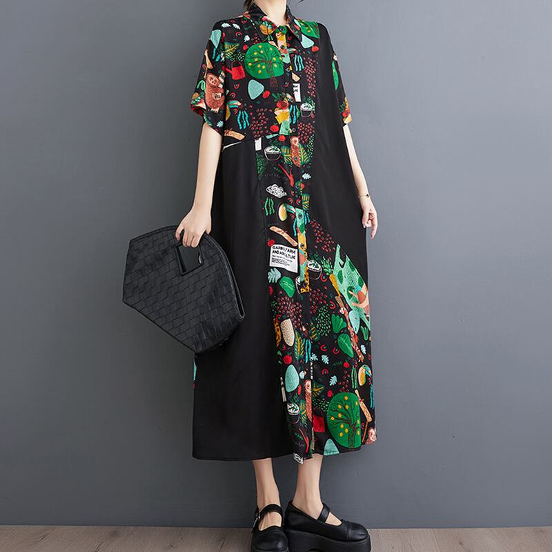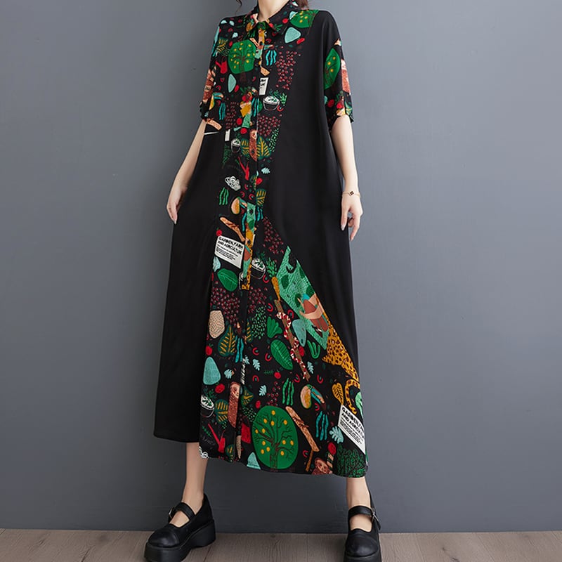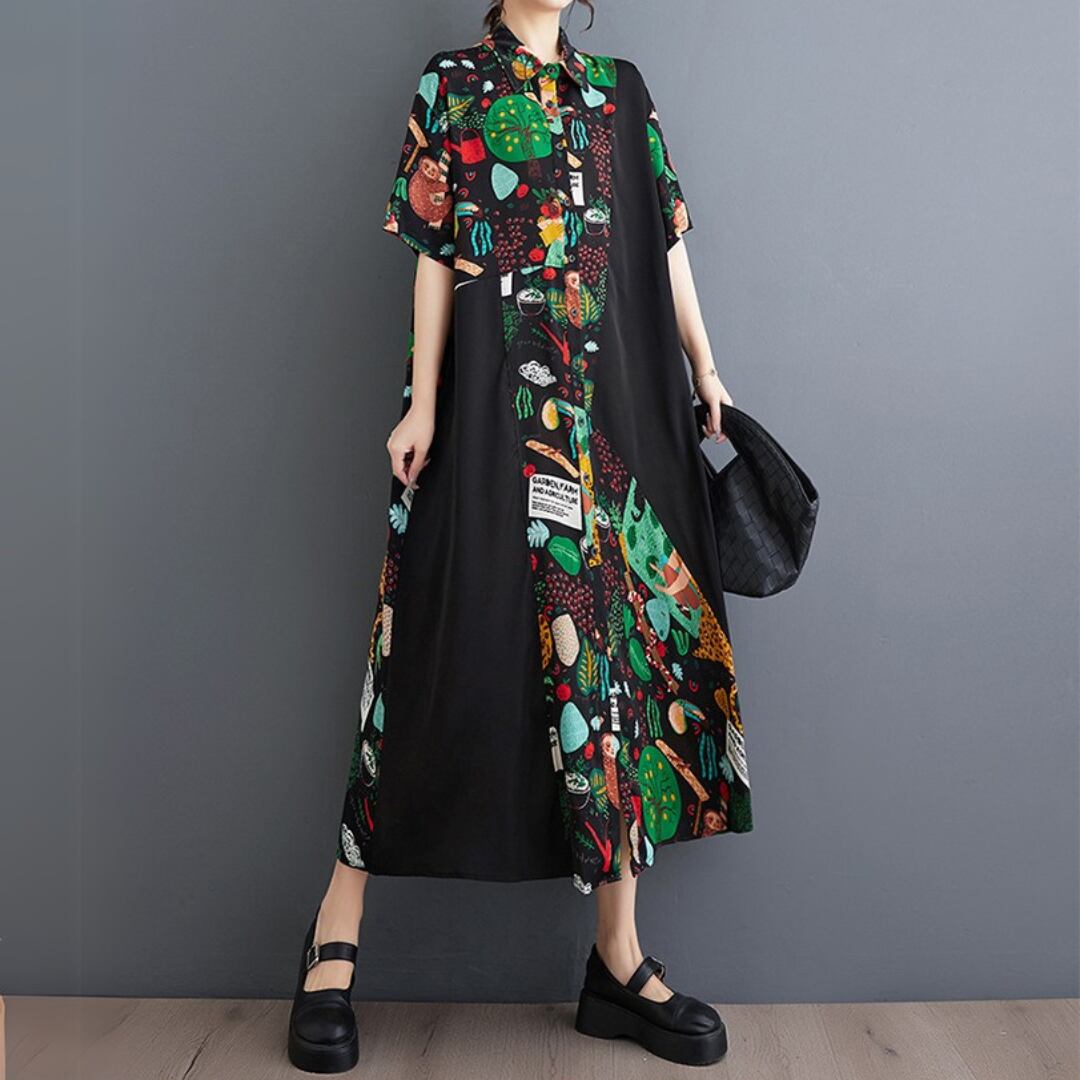 個性的なアーティスティックプリントが目を惹く、切替デザインのシャツワンピース。