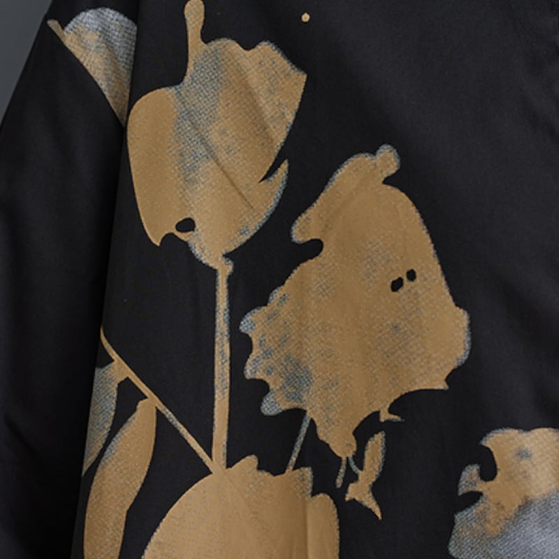 大胆なフラワープリントが印象的なオーバーサイズシャツワンピース。