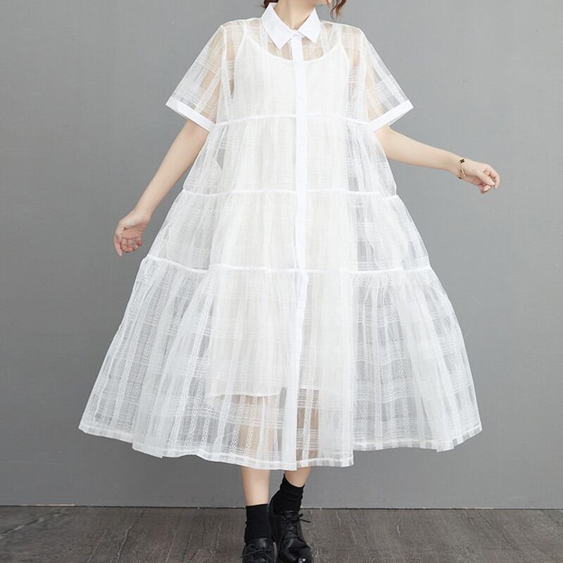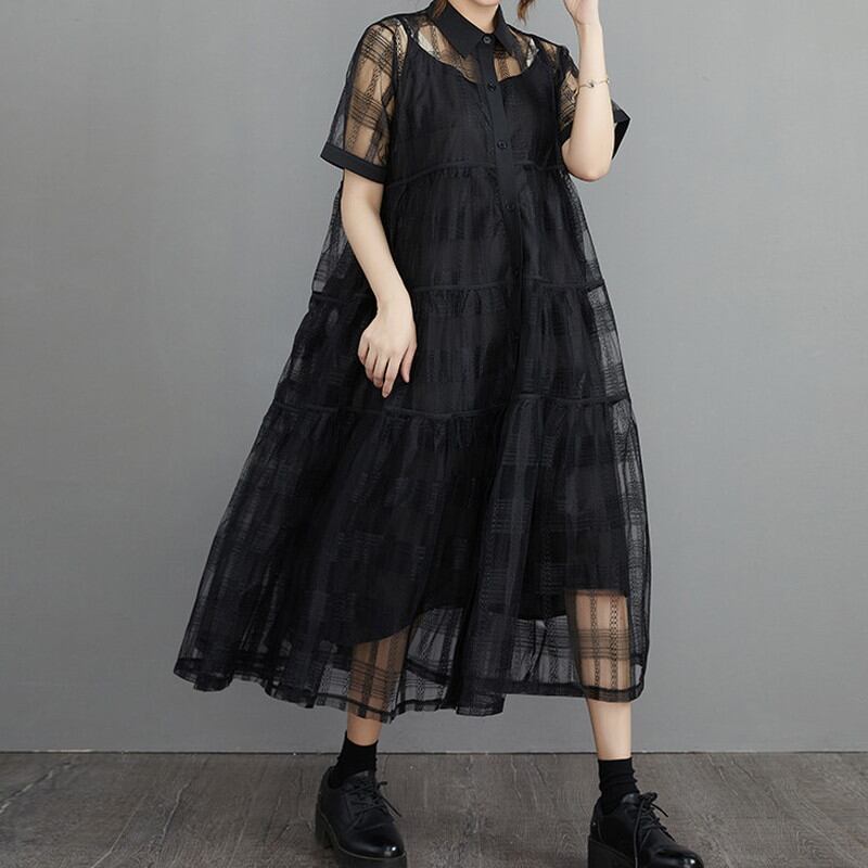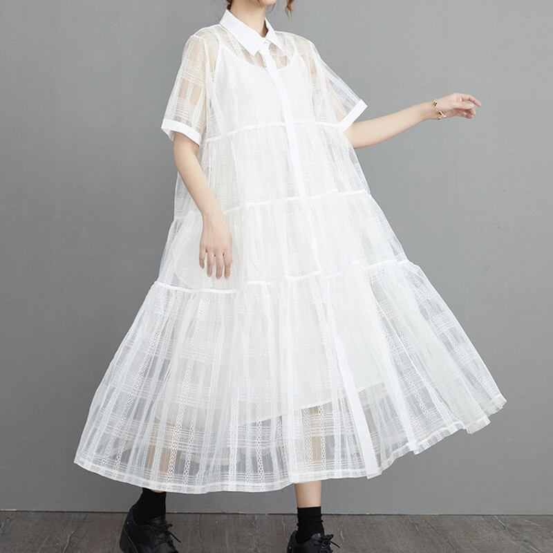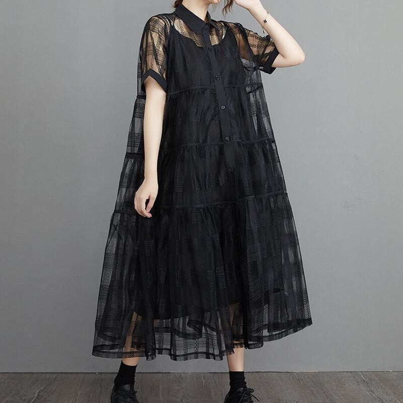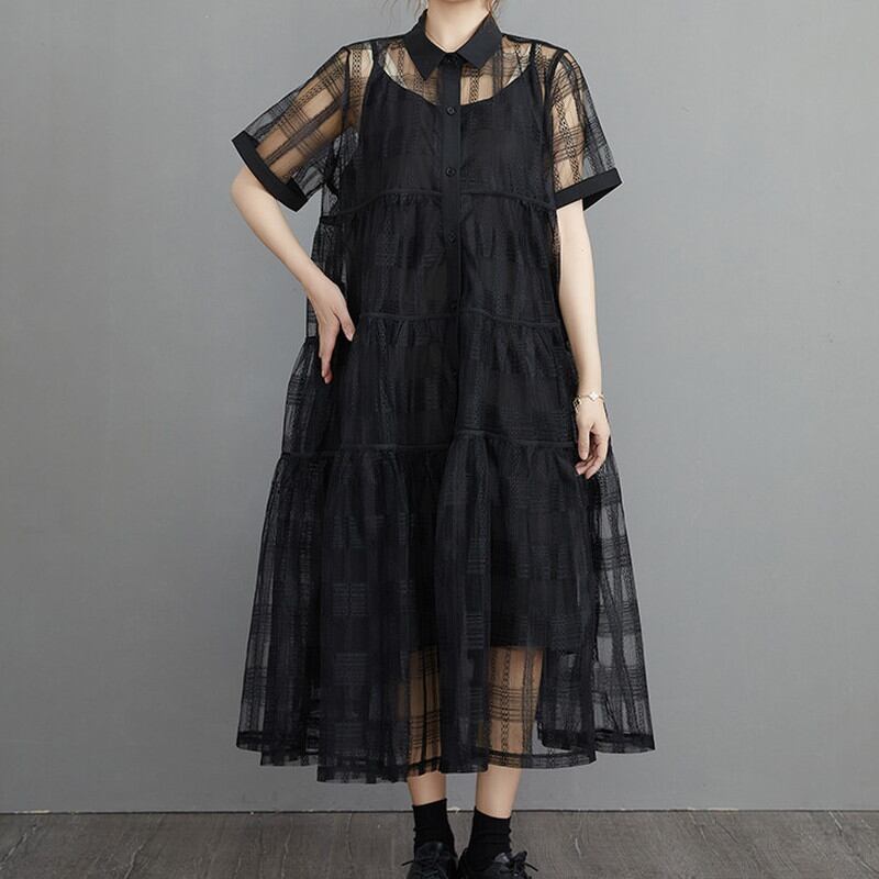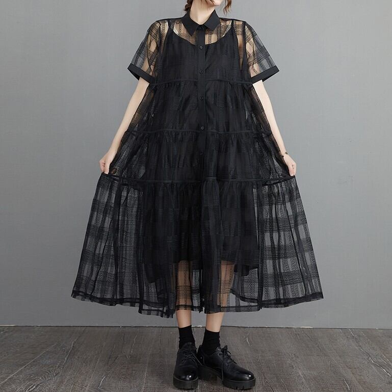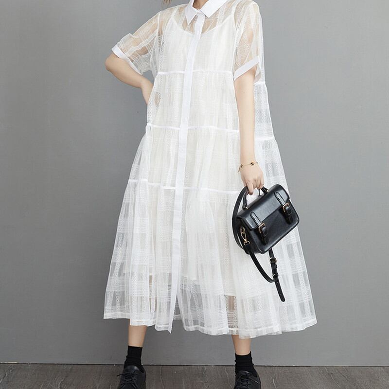 シースルーシャツワンピースとのキャミワンピースの2点セット。