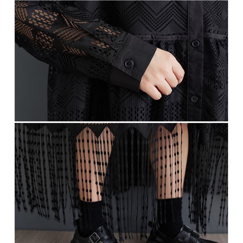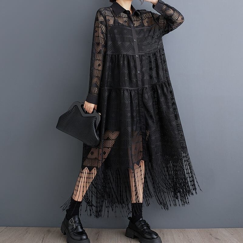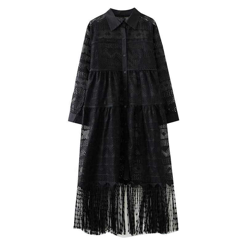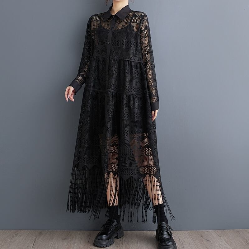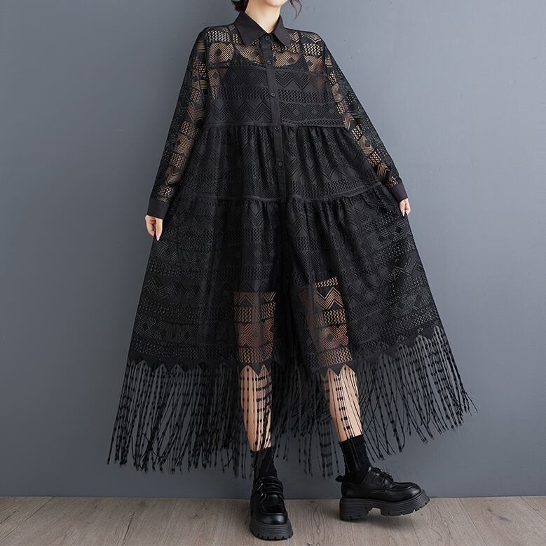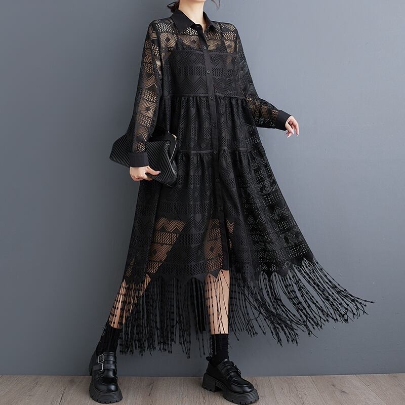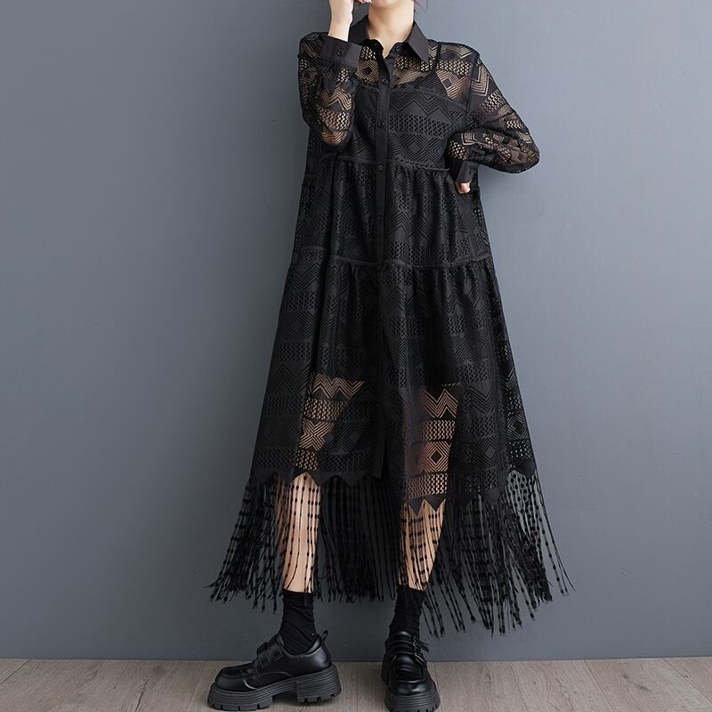 総レース フリンジ シャツワンピース 30036