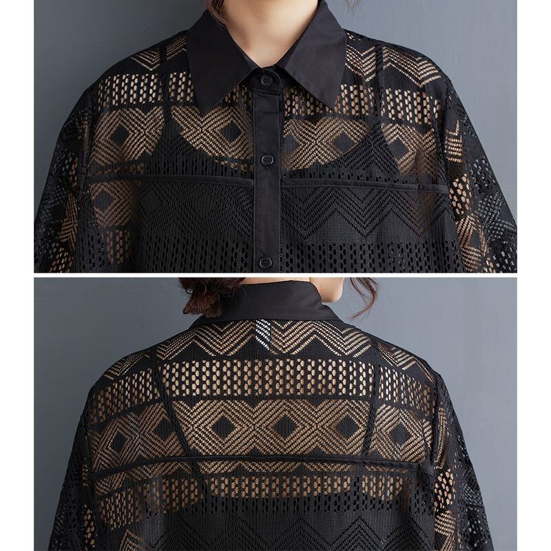 幾何学模様の総レースが美しいロング丈シャツワンピース。