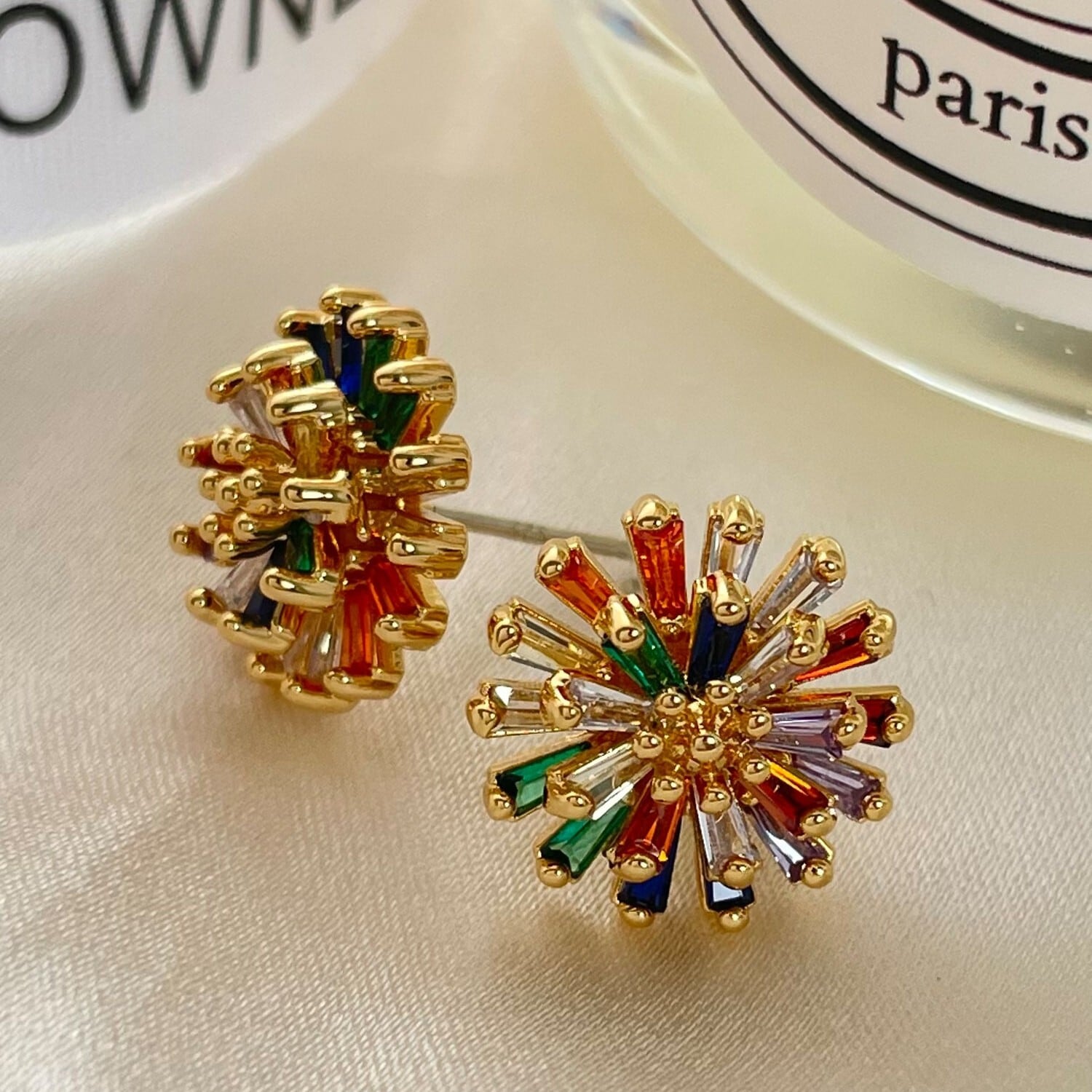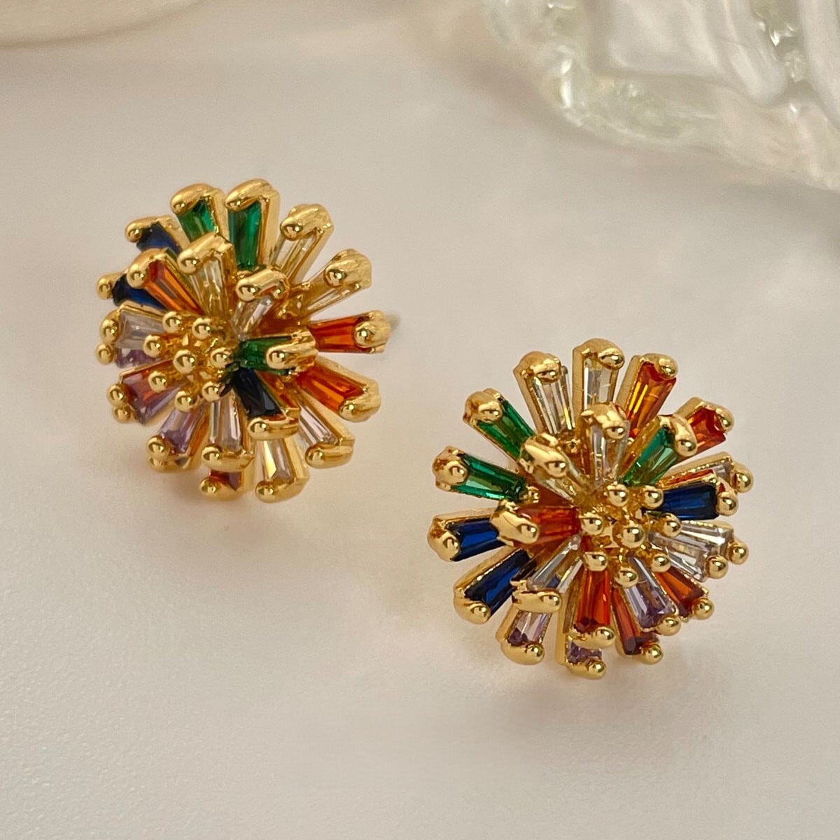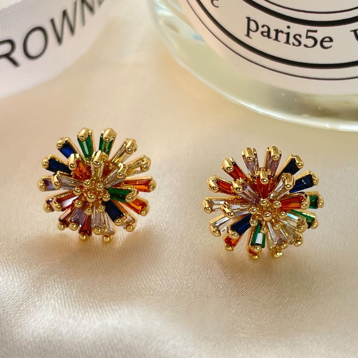 華やかなマルチカラーストーンが輝くスタッドピアス。