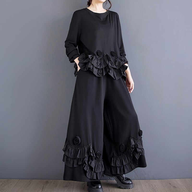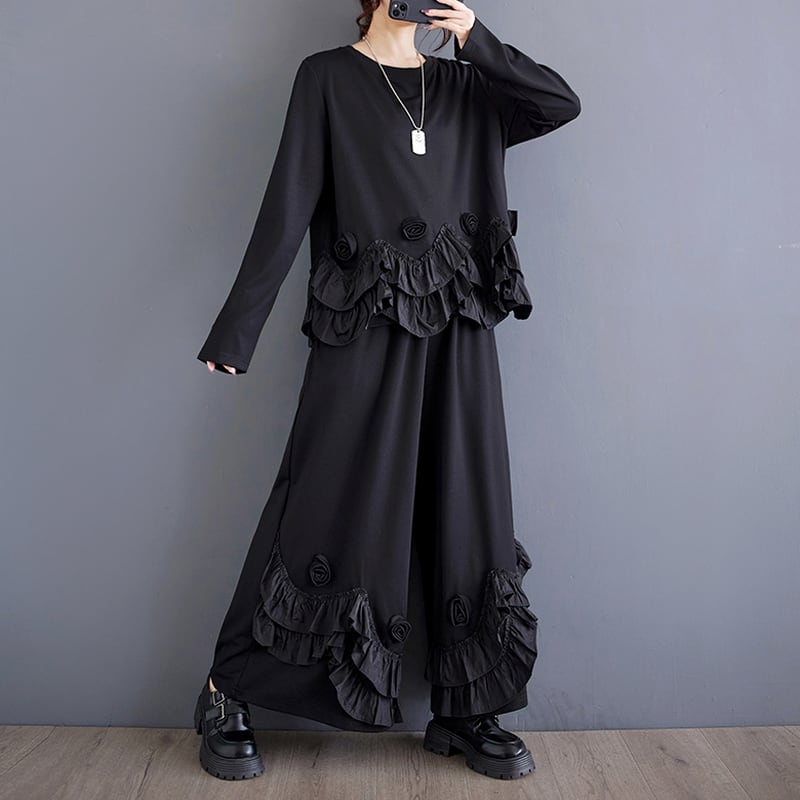 ローズフリル シャツ&ワイドパンツ セットアップ 00043