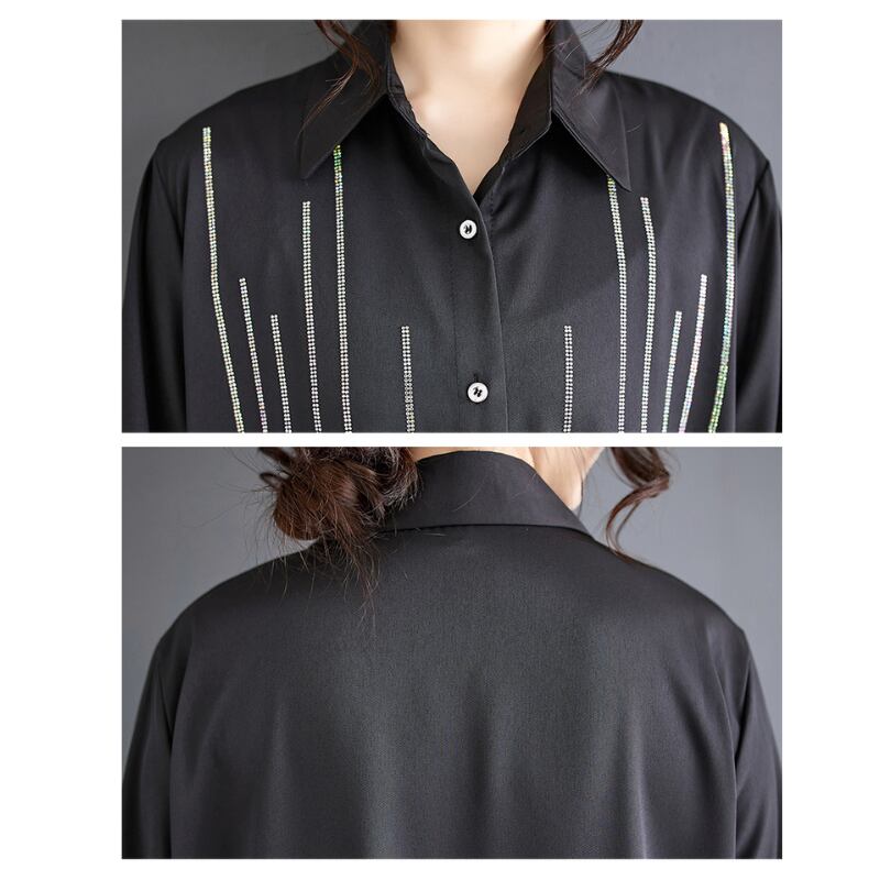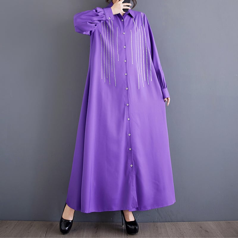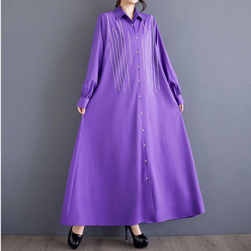 ラインストーン装飾 マキシ丈シャツワンピース 00048