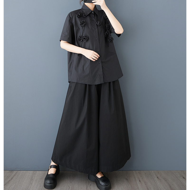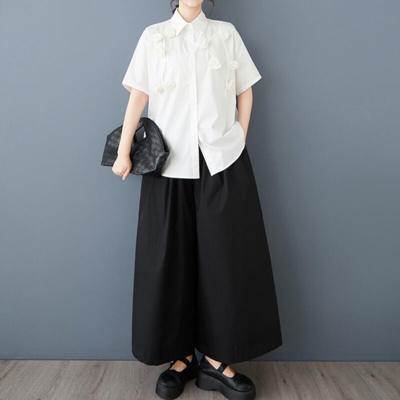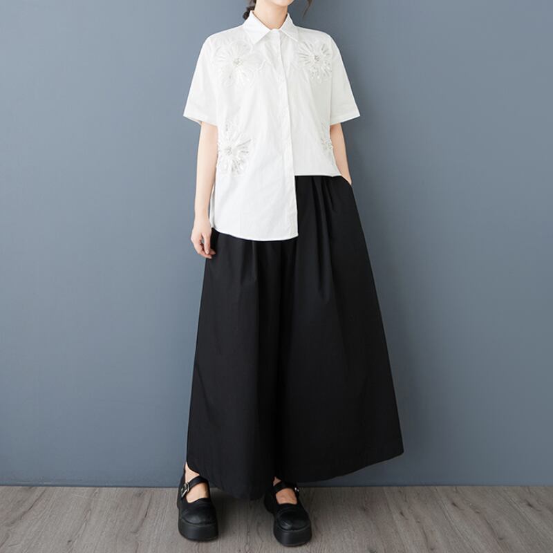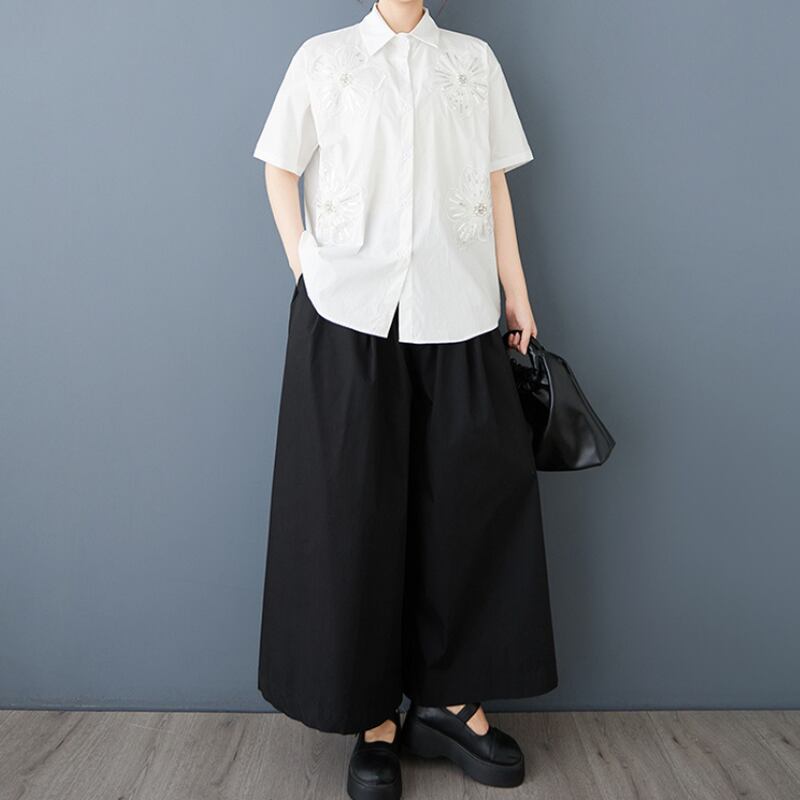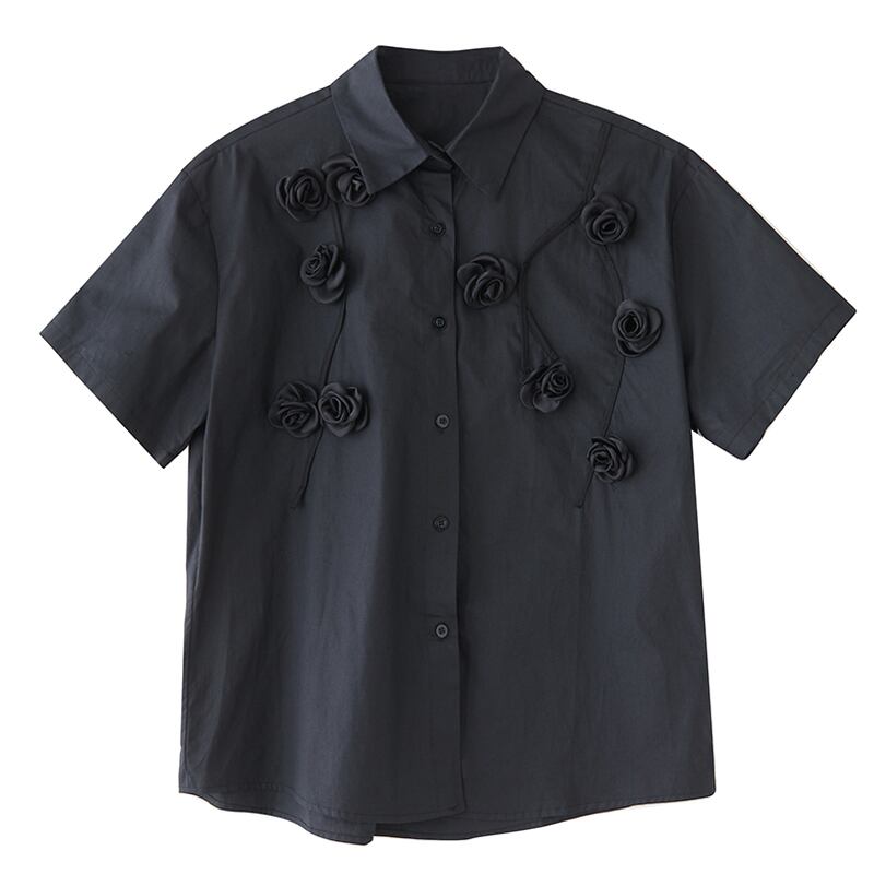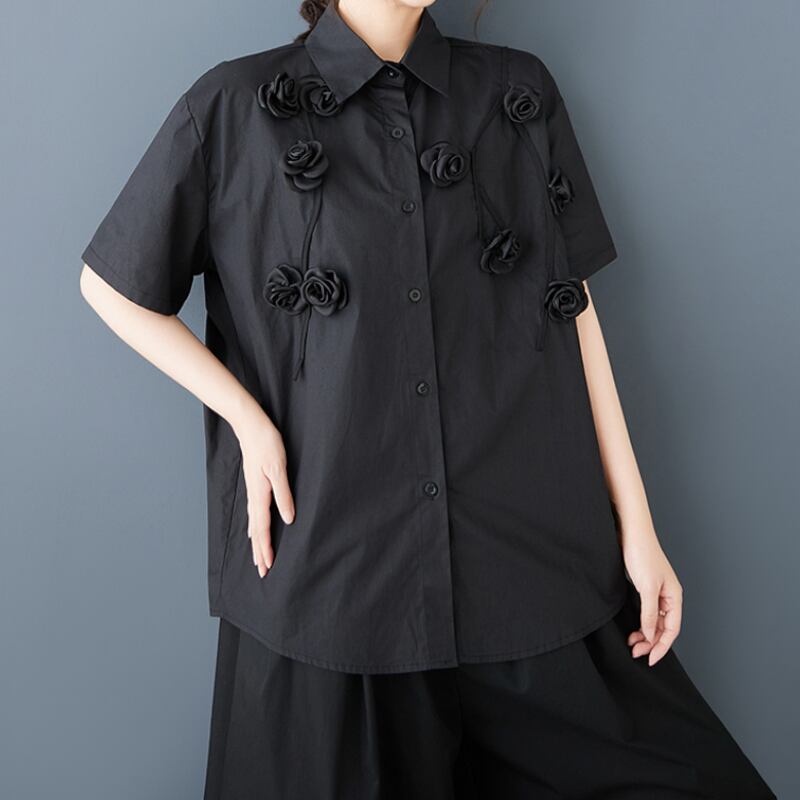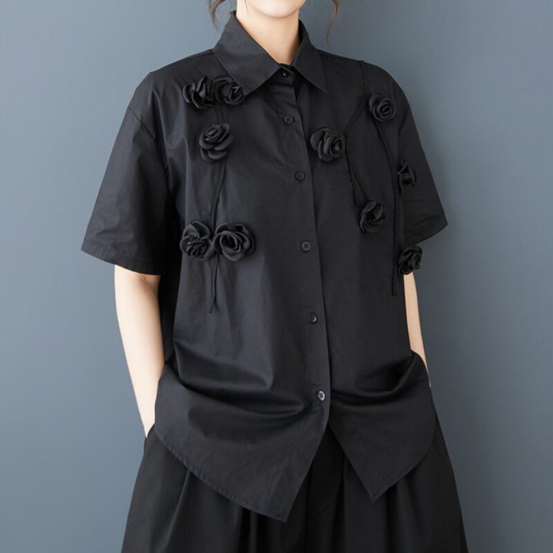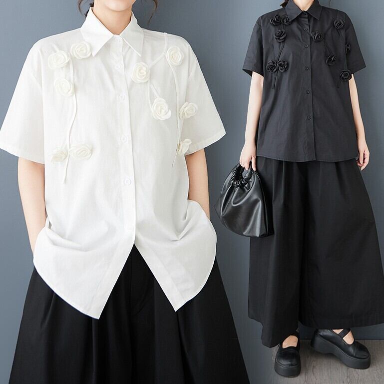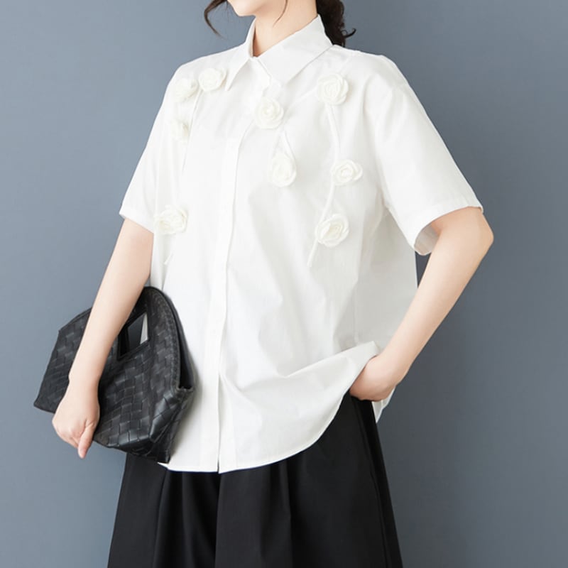 立体ローズ刺繍 オーバーサイズ シャツ 30049