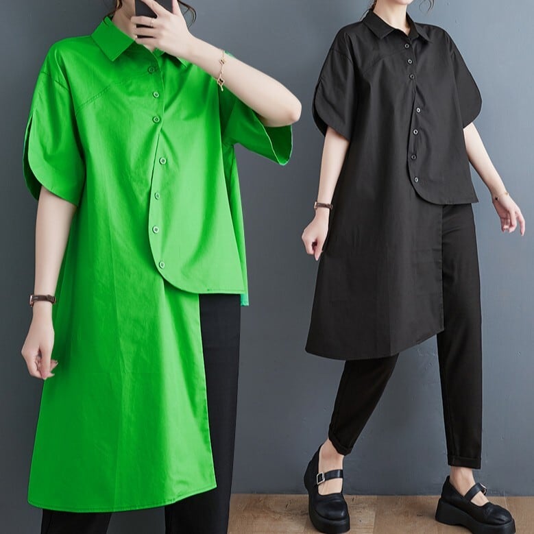 アシンメトリー ボタンダウン シャツ30054