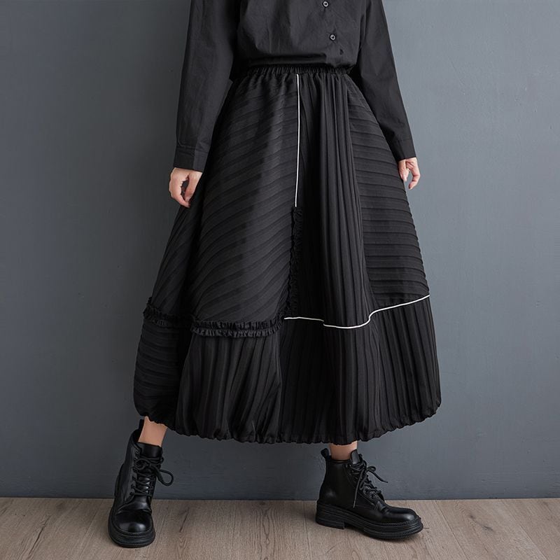 プリーツ切替が目を惹く、ロングスカート。