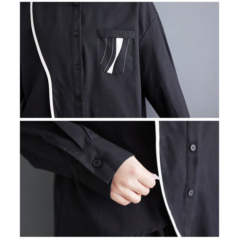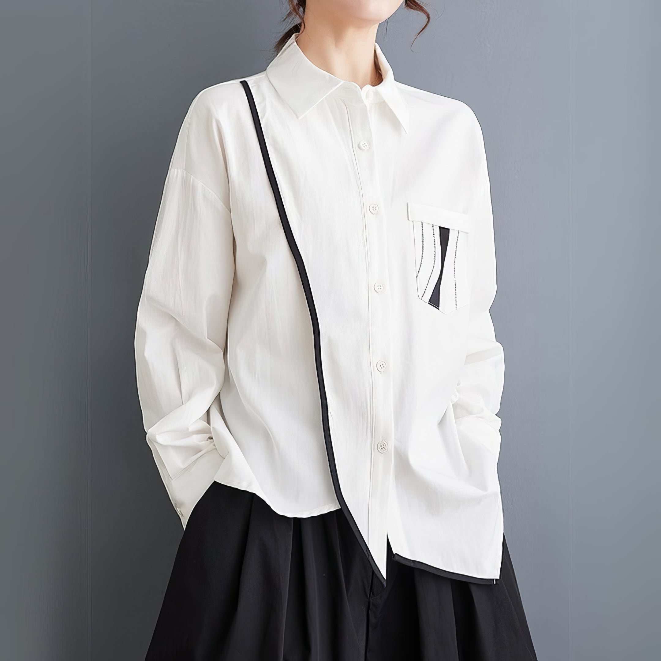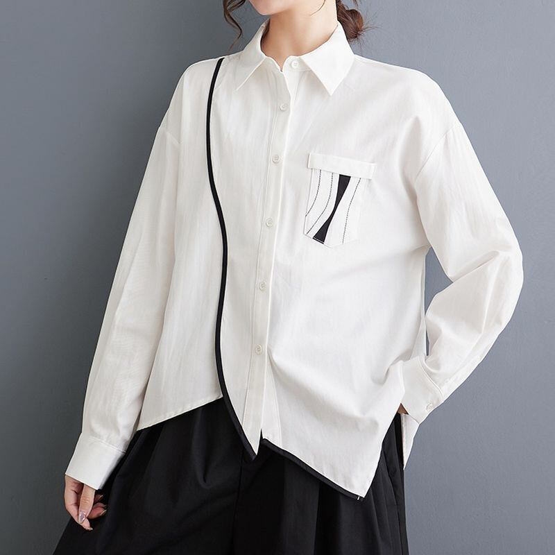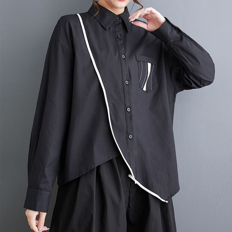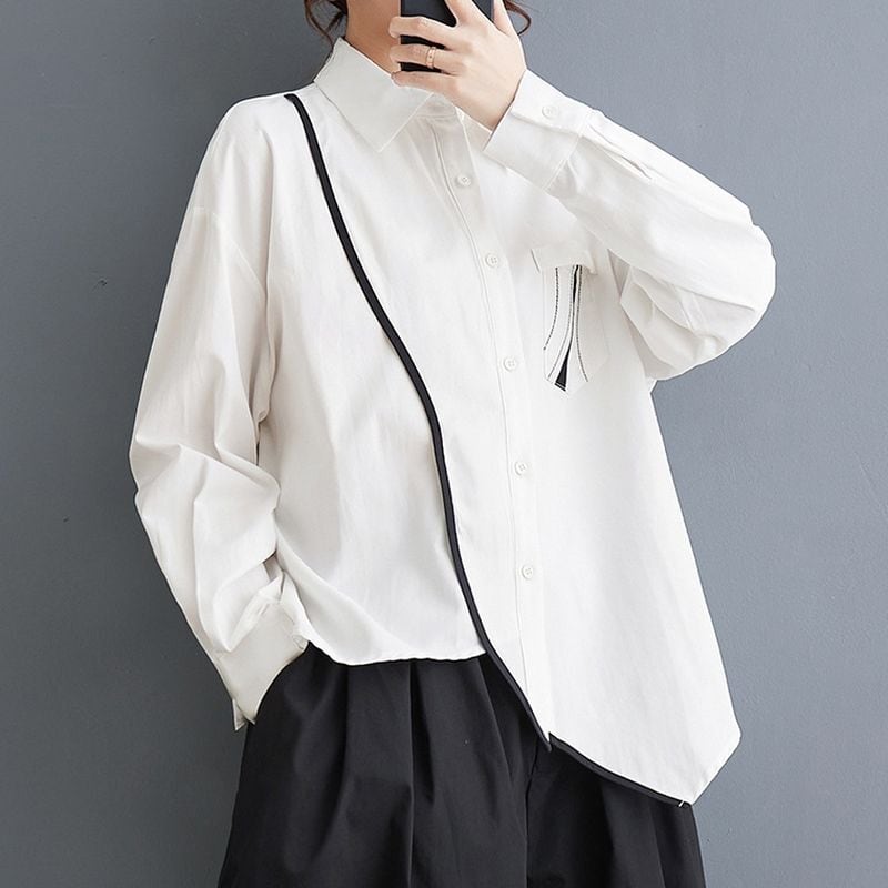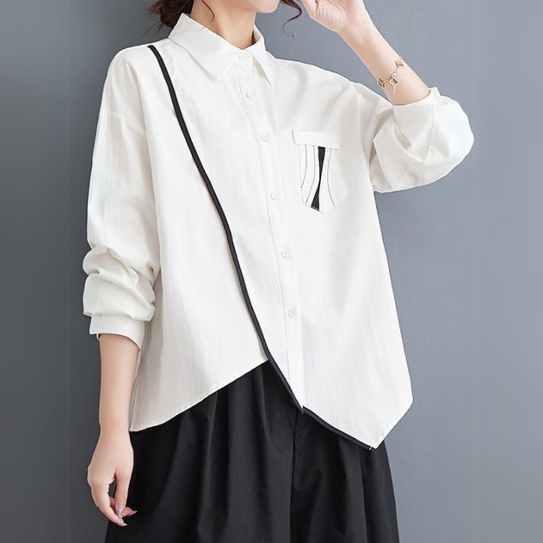 バイカラー アシメトリーヘム シャツ 00089