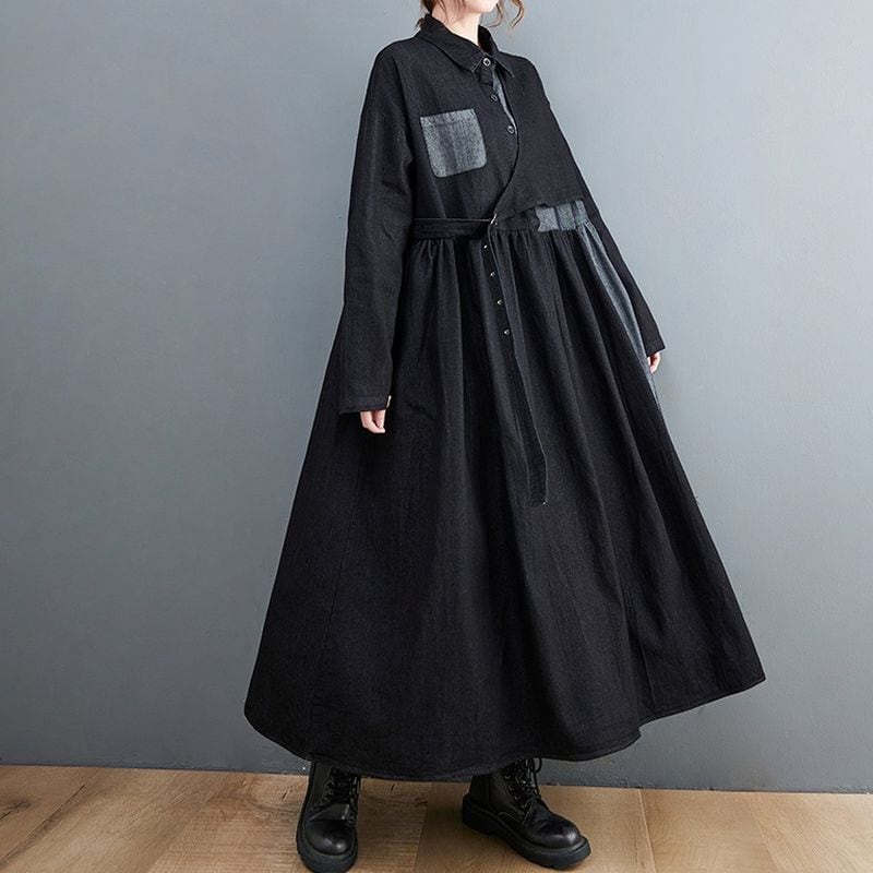 コントラストが目を惹く、アシンメトリーデザインのロングワンピース。